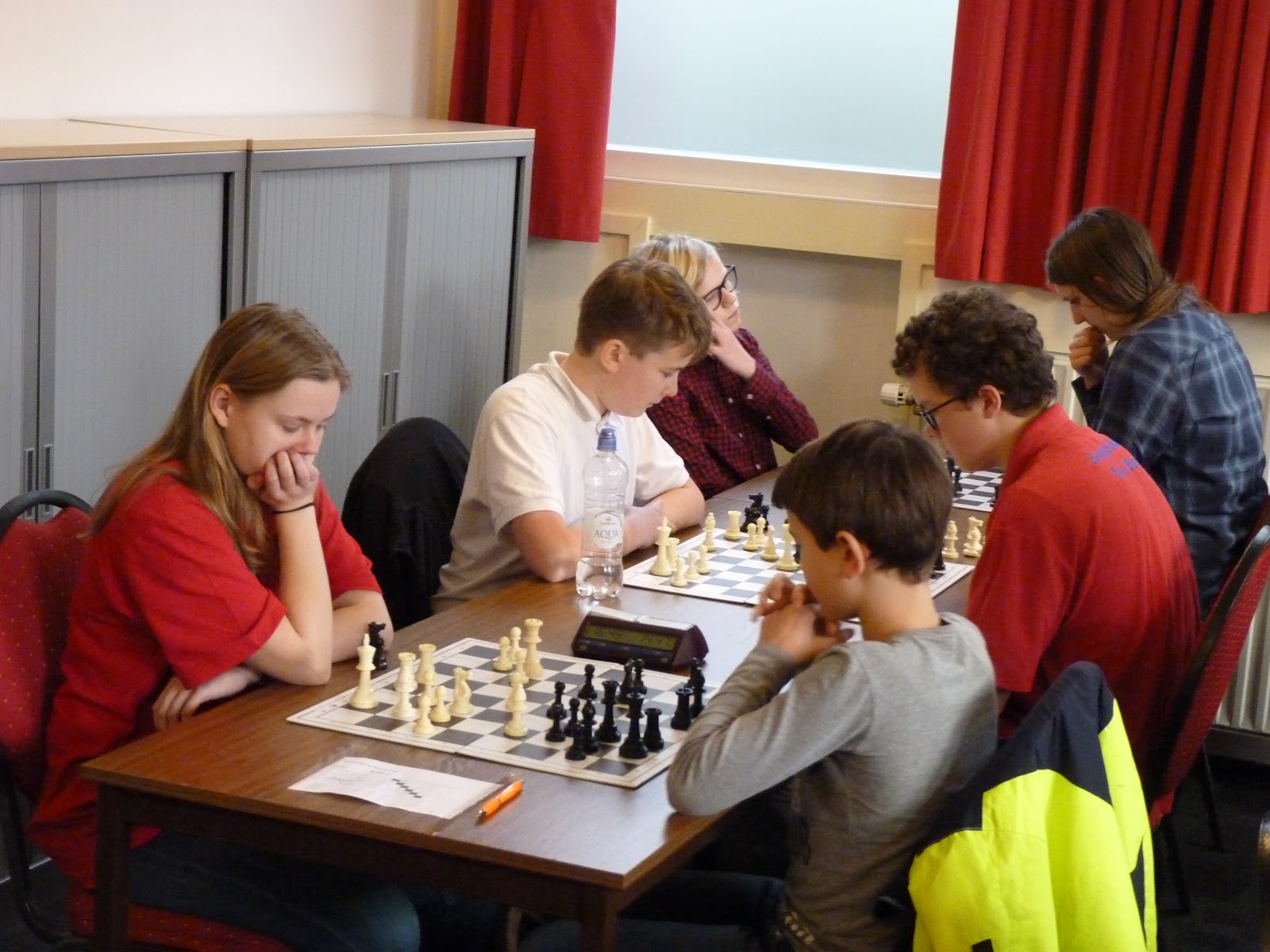 In de rode zaal, het oude clublokaal, zaten de groepen van 6 schakers. Deze groepen hebben 20 minuten per persoon per partij. Hier werd kwalitatief geod gespeeld. In de A-groep zelfs twee spelers die al in de KNSB hebben meegespeeld. Voorwaar een sterk bezet toernooi.