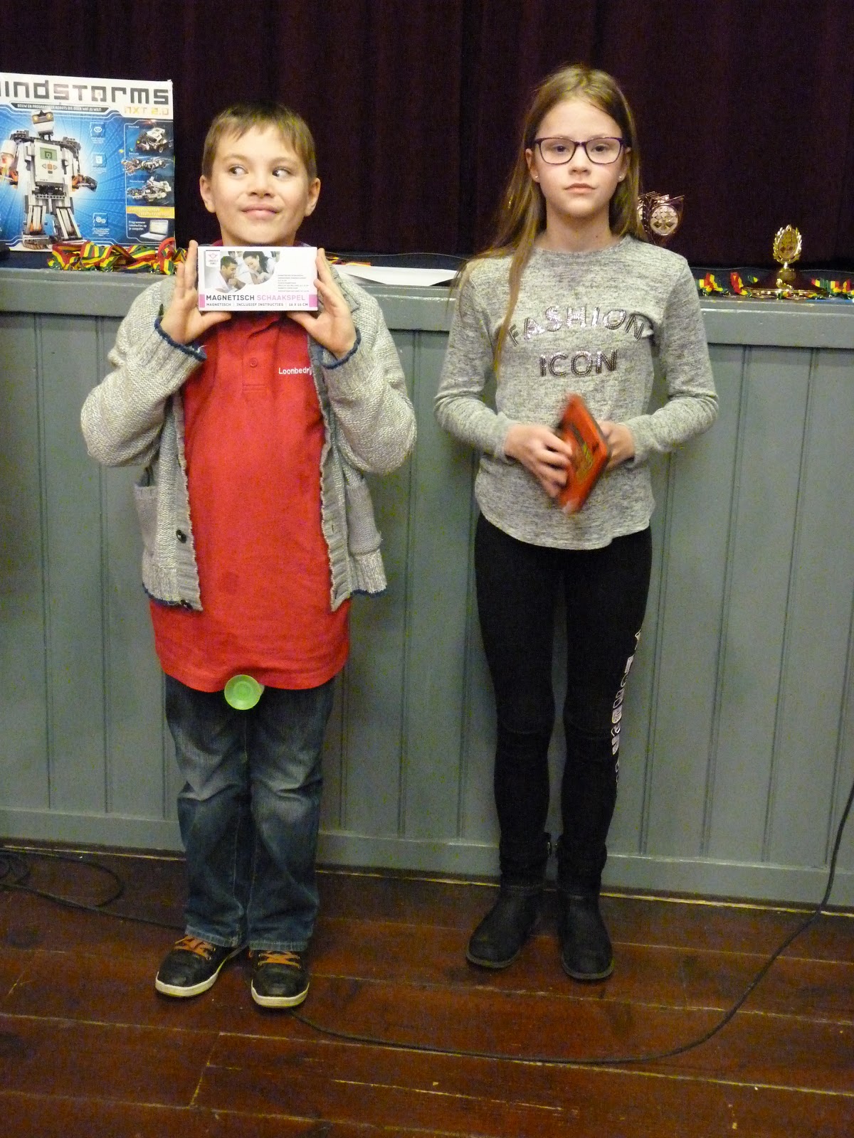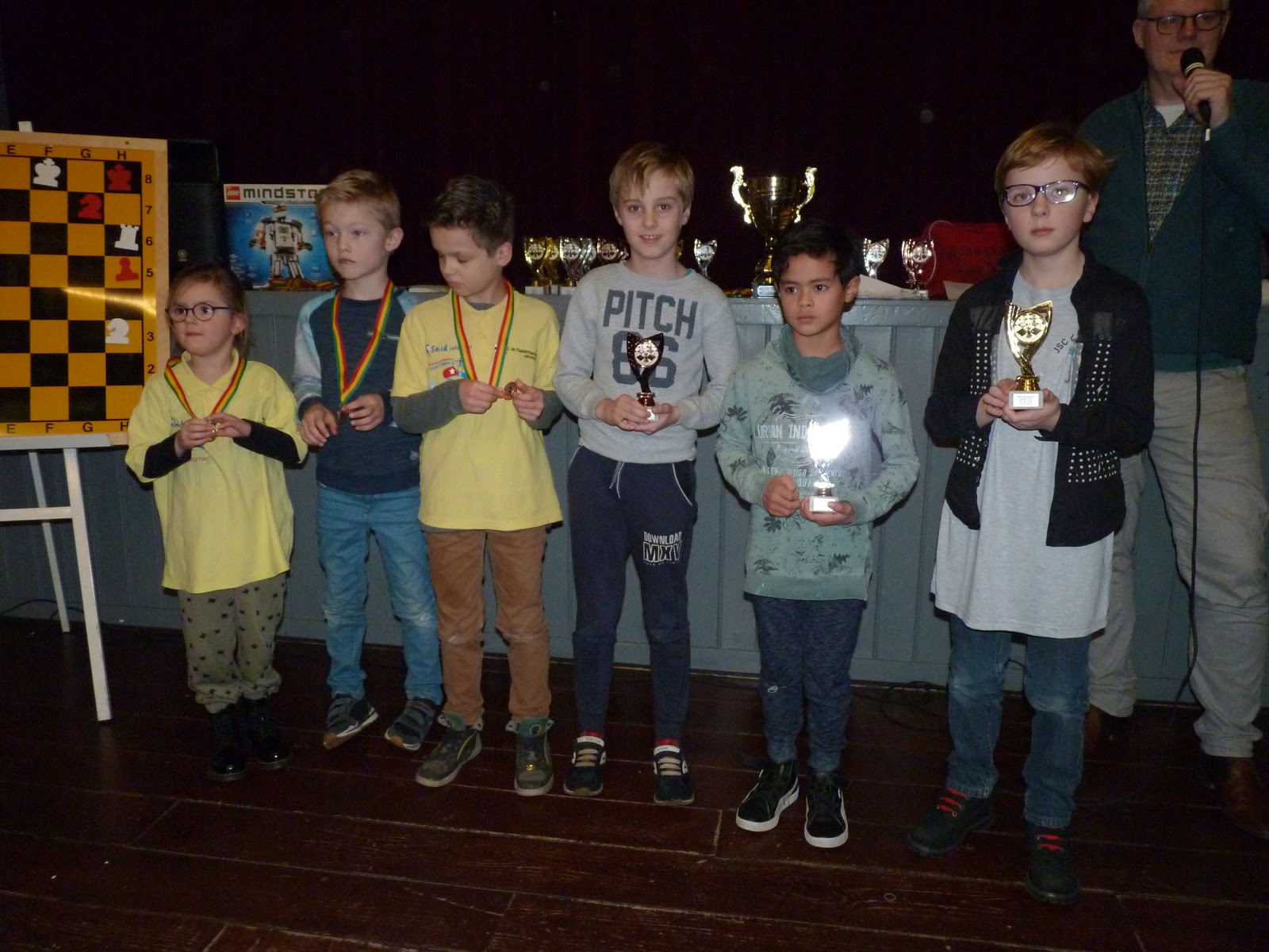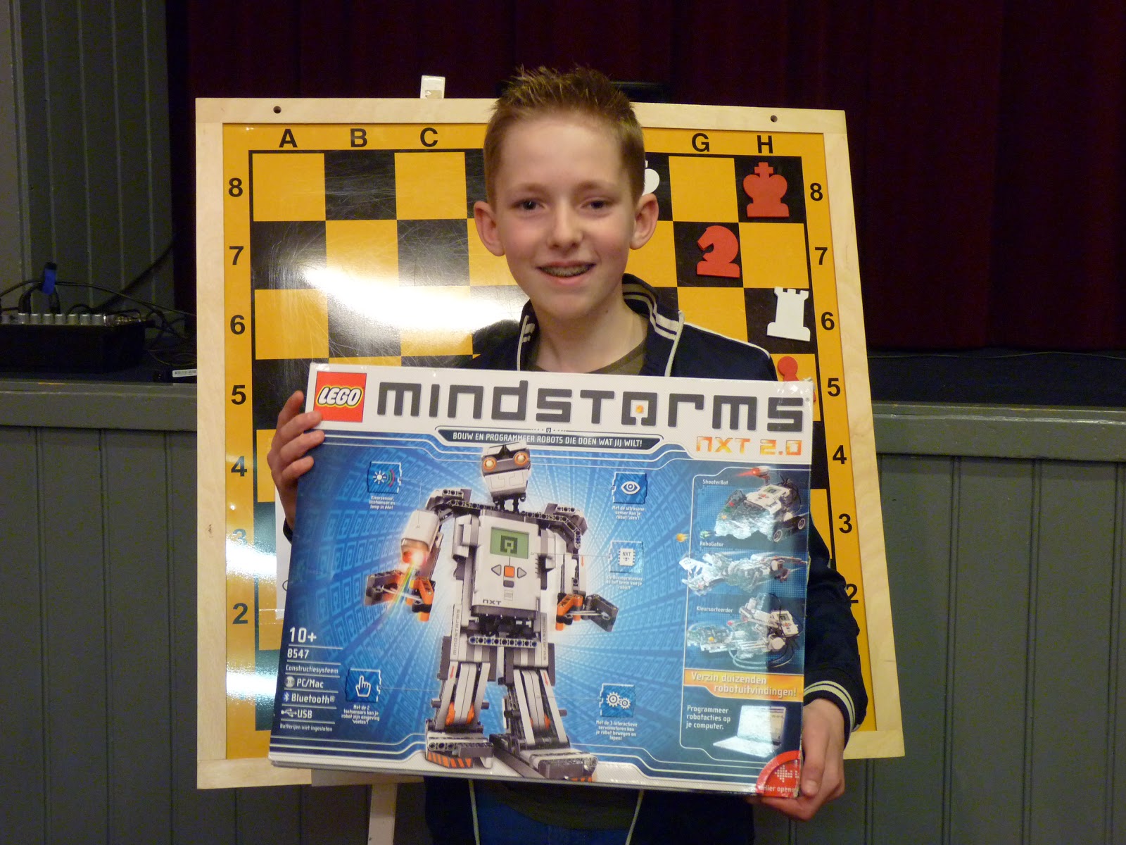 Om vijf uur werden alle groepswinnaars in de grote wisselbeker gedaan en rond half zes was daar de verlossende trekking: Levi Sekema, de winnaar van groep D, werd eigenaar van de prachtige Lego robot.