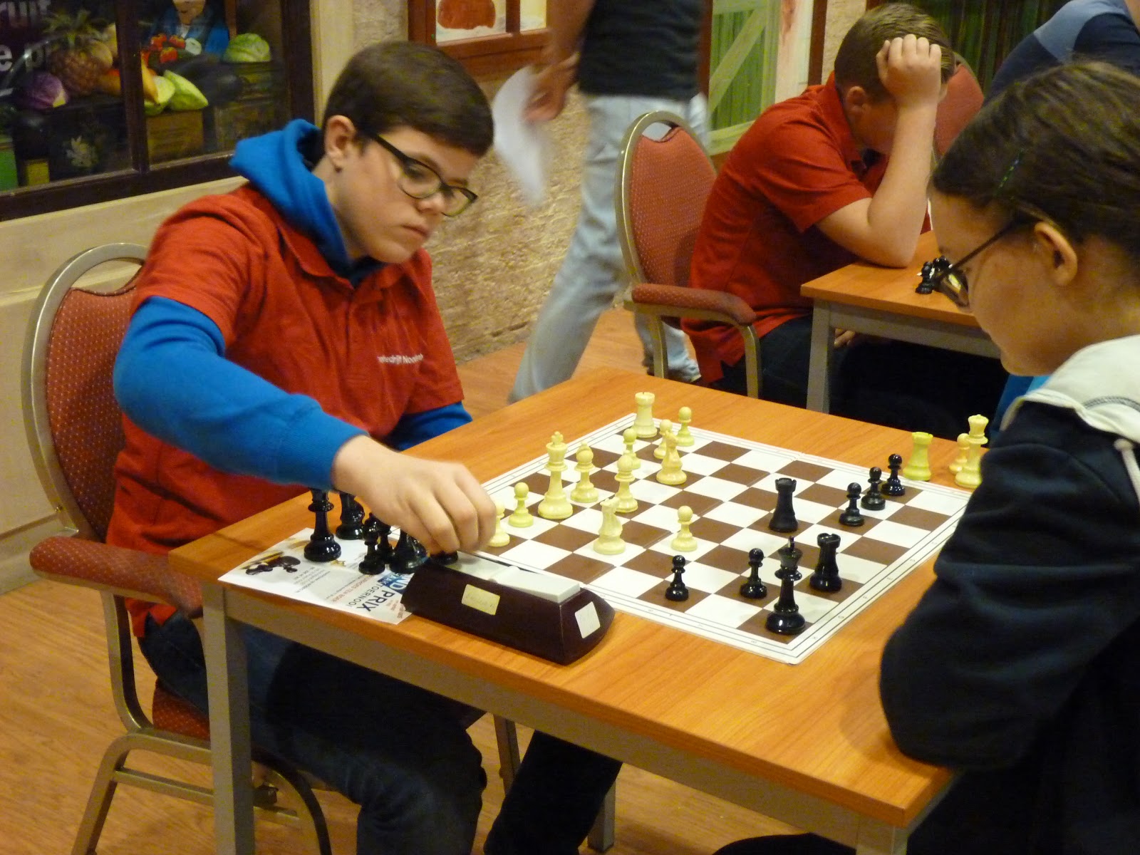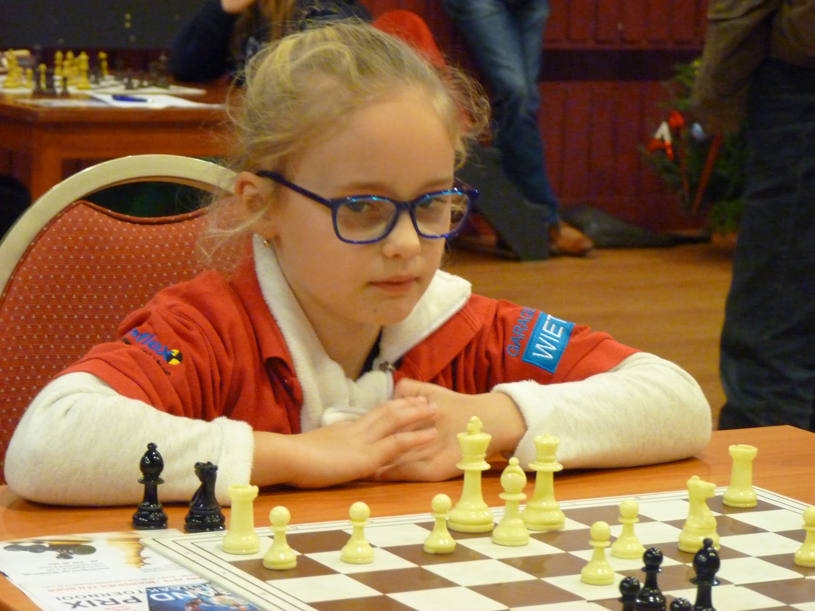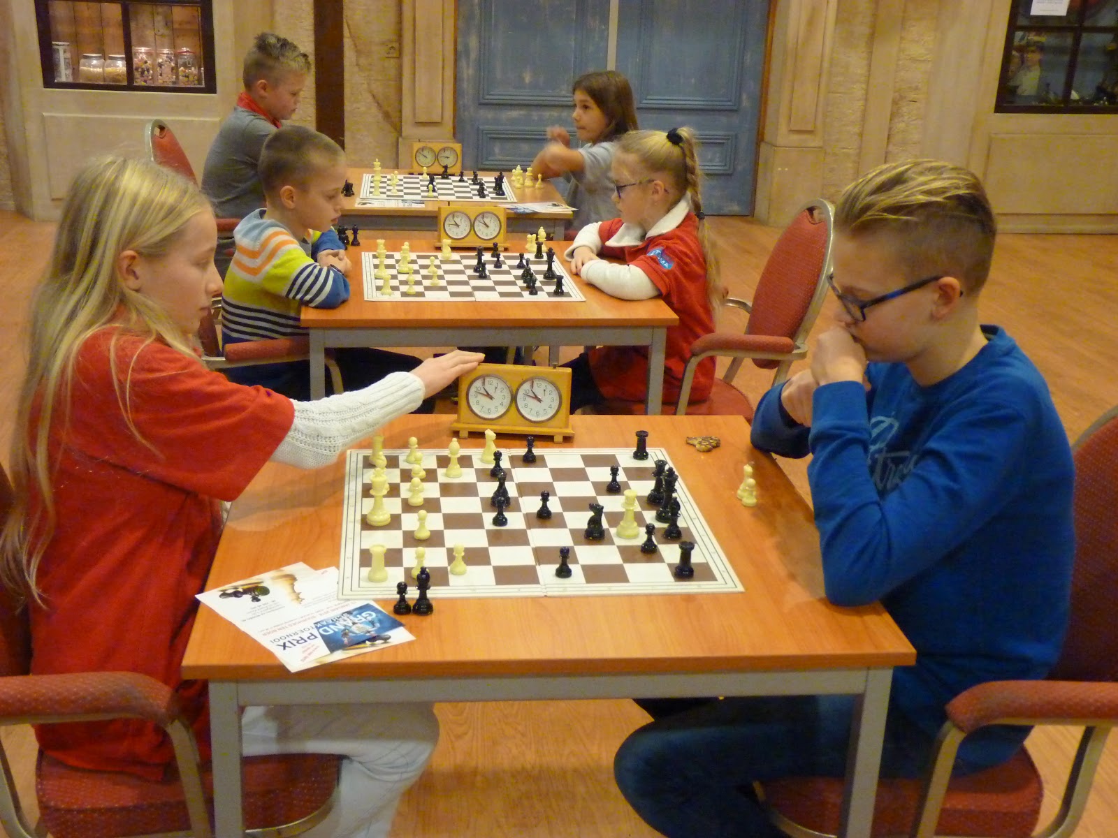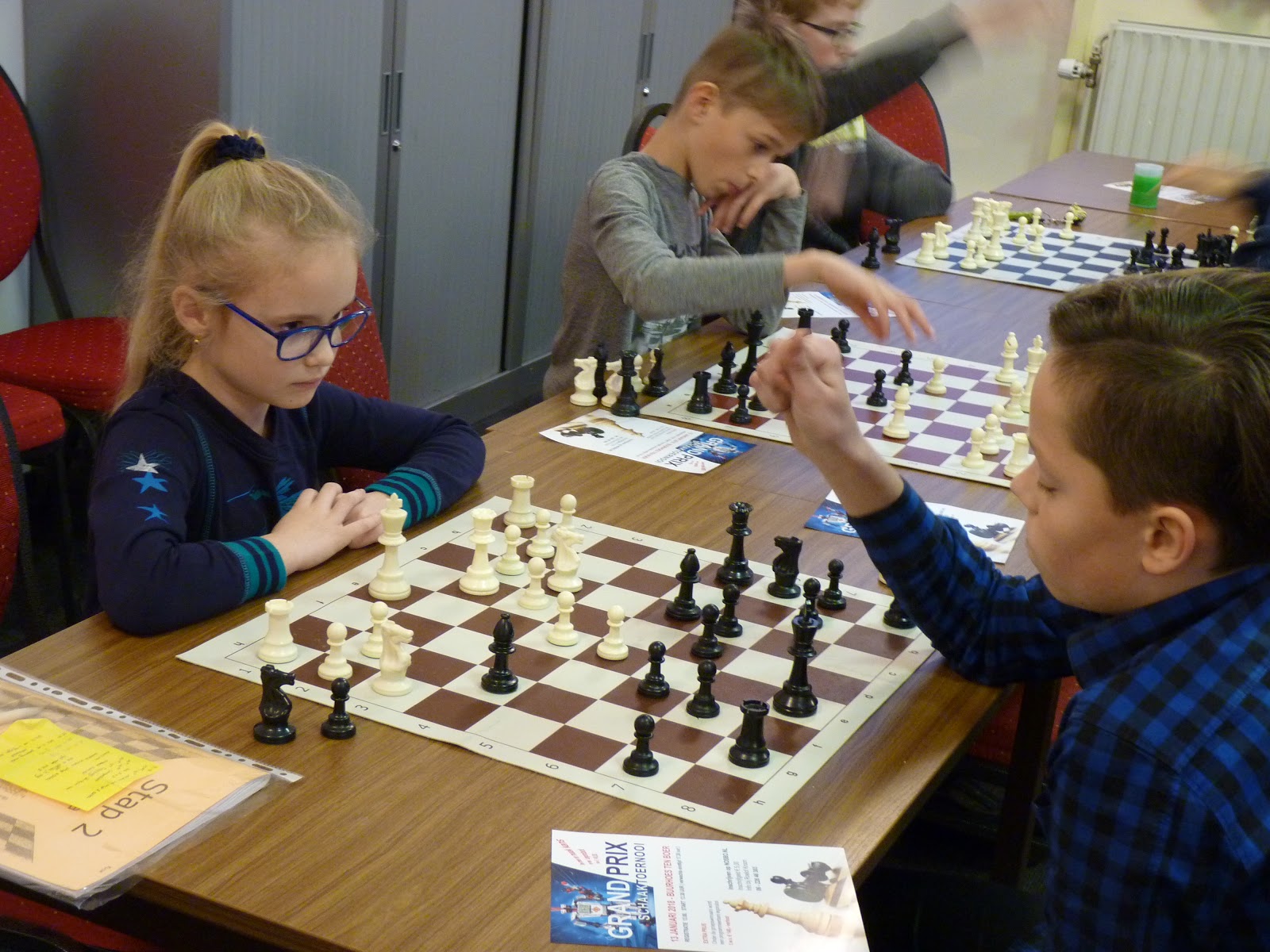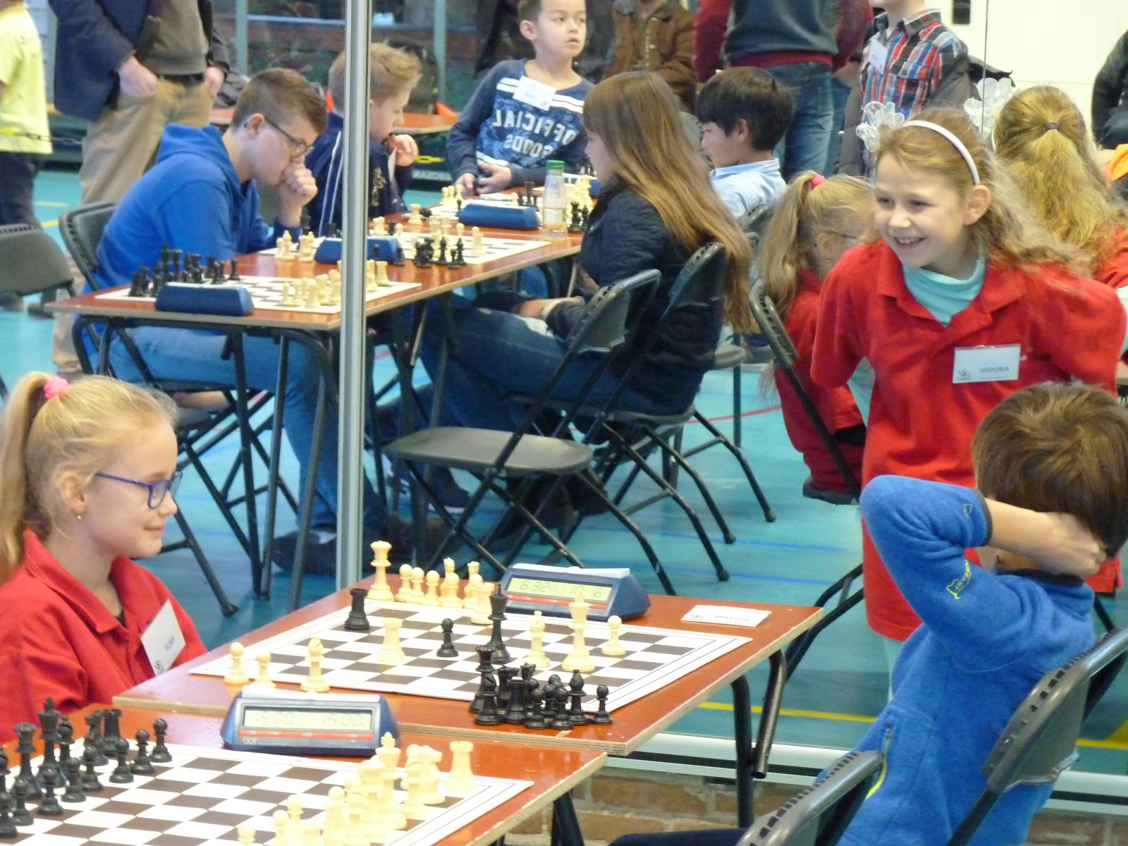 Haar nichtje deed dat in de poule waar Isidora ook meedeed. Isidora kan heel goed schaken, maar in de loop van een partij gebeuren er altijd dingen die even voor een wat verminderde concentratie zorgen. Vandaag ging het heel goed. Ze startte met 3 uit 3 en pas in de vijfde ronde verloor ze een partij tegen de nicht van Mariëtte.