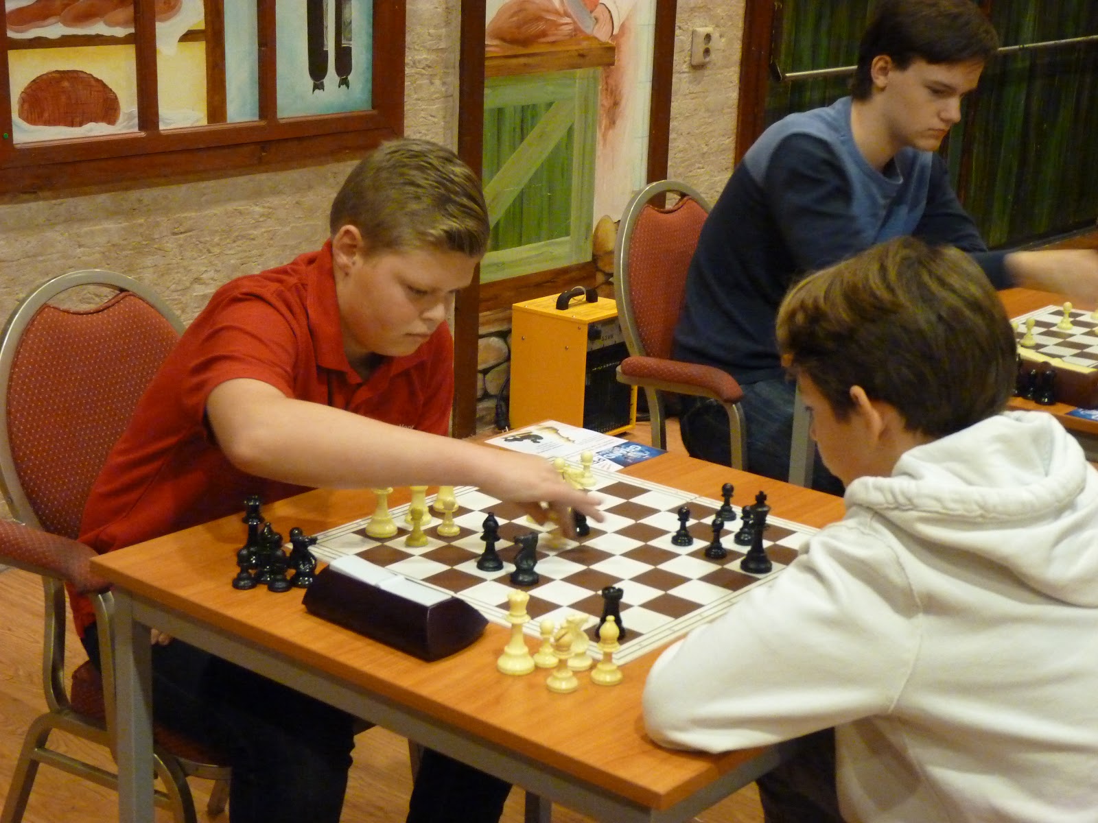 speelde zwart alsnog lange rokade, maar moest twee zetten later van de toegesnelde Roland Kroezen alsnog zijn zet terugnemen én een andere zet met de koning spelen. Robin won de partij hierna soepeltjes, omdat hij heel goed in eindspelen is.