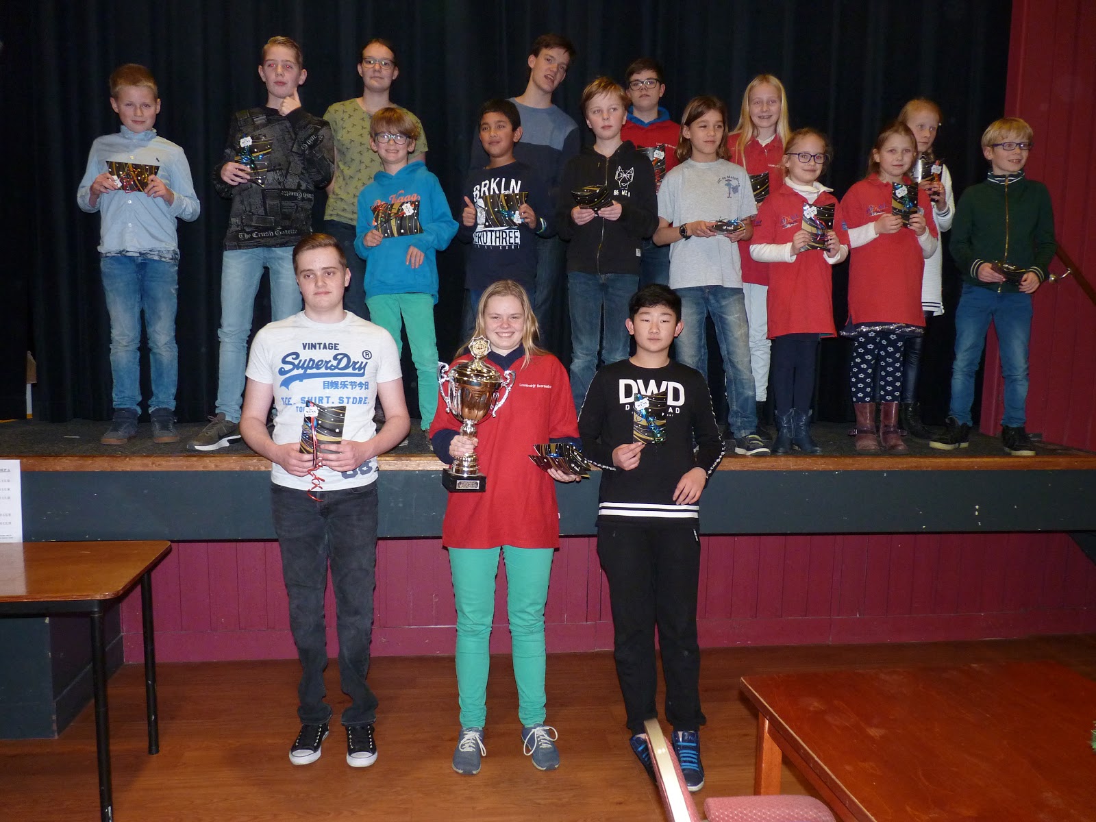 Zoals gezegd stal Lindert de show met zijn derde plaats. Hij haalde 4 uit 6, waaronder een remise tegen de zoon van een grootmeester. Dat mag wel even vermeld worden. Joël had weer geen geluk. Slechts 1 punt. Maar hij doet het toch wel erg goed dit jaar en gaat hard vooruit.
