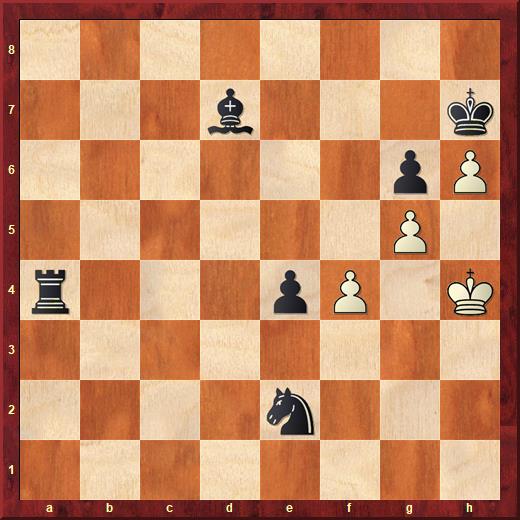 Hier speelt Robin het winnende 37. Le3 Lc3 38. g5 Lh8 39. Kg4 c4 40. Kf4 Ke6 41. Ke4 Lg7 42. Ld4 Lf8 43. g6 hxg6 44. hxg6 Lh6 45. c3 Lf8? 46. g7 1-0 Tot slot nog een fragment van een verliespartij van Roelof tegen een oud winnaar van de Grand Prix van Ten Boer, Sander Taams. In deze stelling speelde Roelof nietsvermoedend