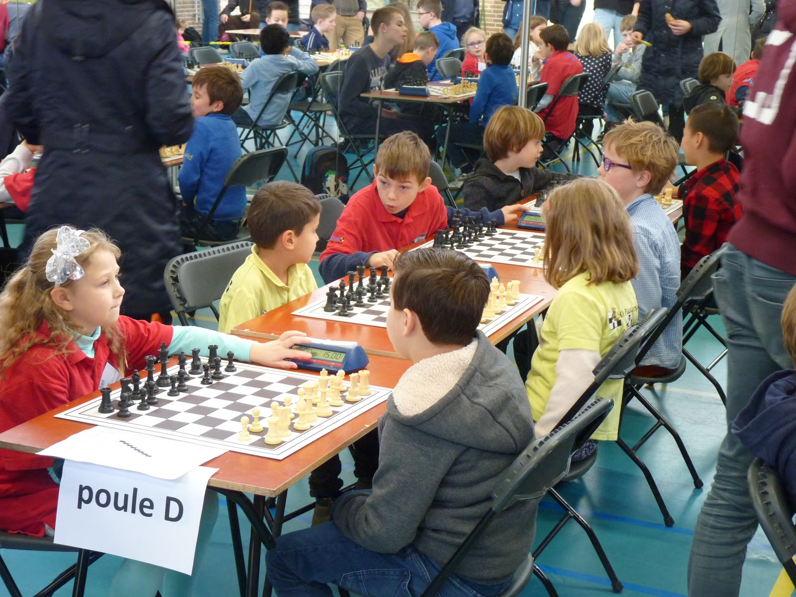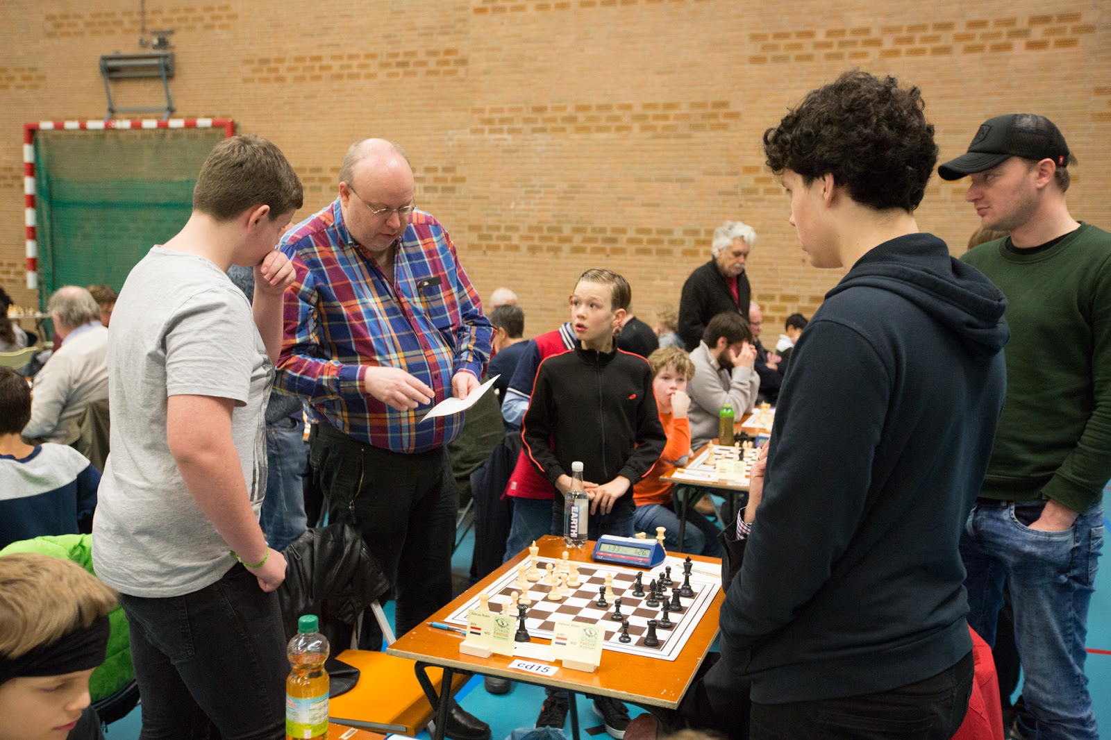 Dat er kinderen voor het eerst meespeelden betekende wel dat sommige groepen best wel intensief waren om te begeleiden. Daar vroegen we voorgaande jaren altijd Arend Bensink voor, die dat altijd geweldig deed. We zijn héél erg blij dat Erwin Kok deze rol wilde overnemen. Wat een kei was hij gisteren. Hij begeleidde de kinderen zo enthousiast dat ik denk dat men definitief voor het schaken is gewonnen.