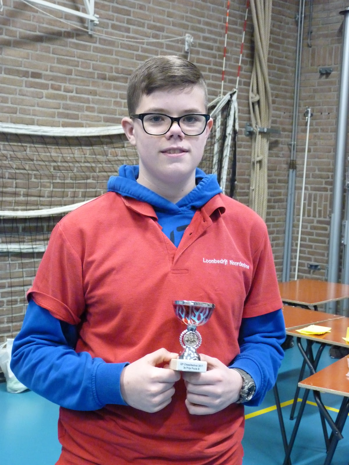 Joël bij één van zijn winstpartijen