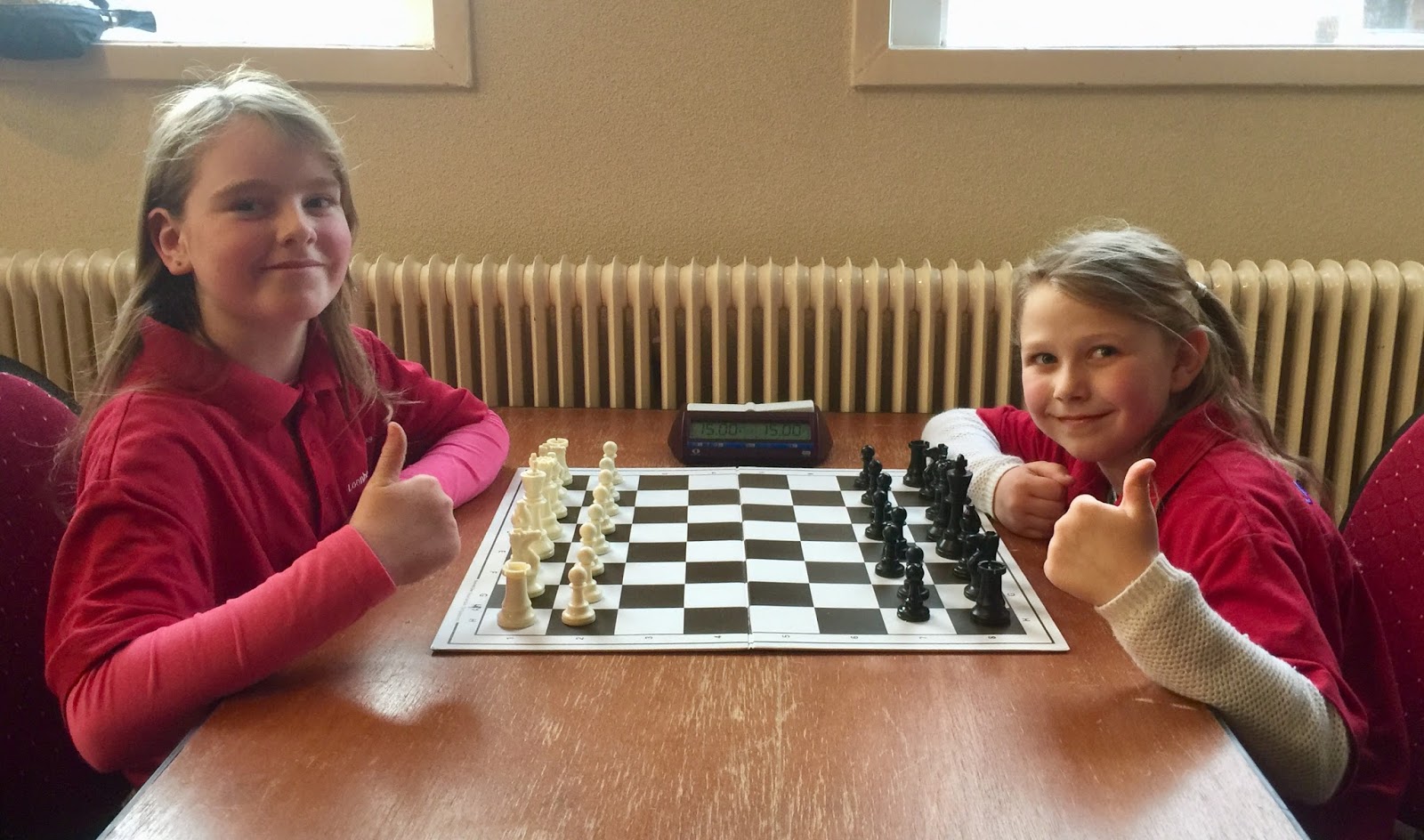 Elisa en Isidora hebben lol tijdens het schaken