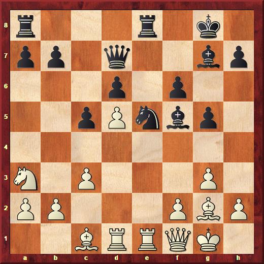 20. Pc4, waarbij hij helemaal gemist had dat zwart na 20… Pxc4 21. Dxc4 Lc2 22. Txe8+ Txe8 23. Tf1 b5 de dame heeft ingesloten. Een mooie combinatie!
