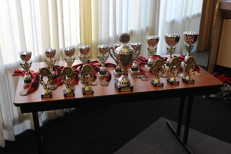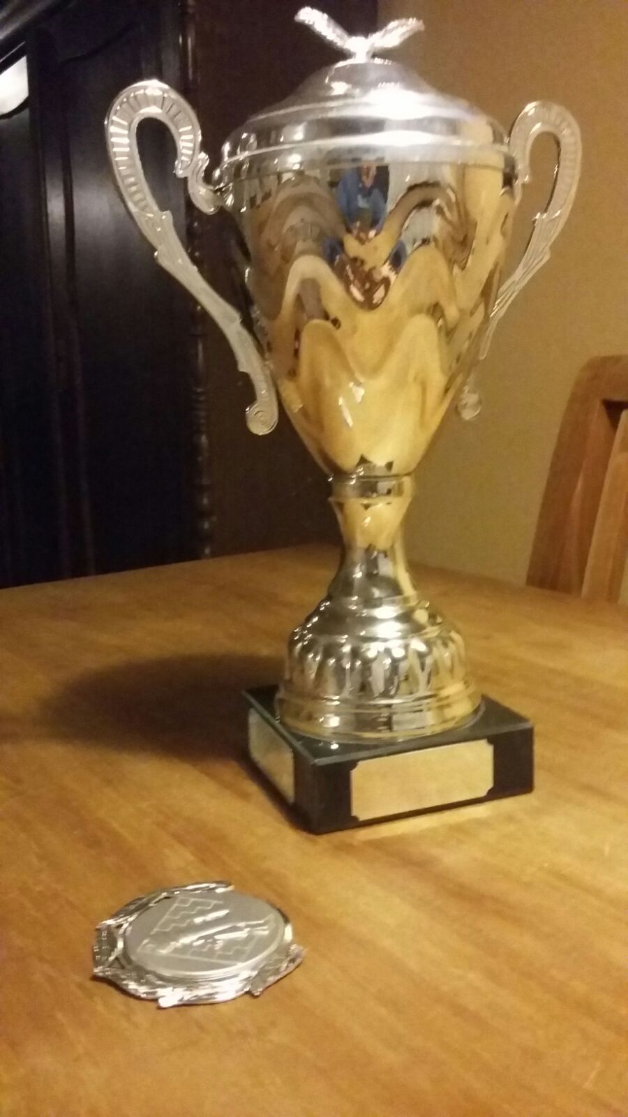 Opgelucht besluit Roelof de beker tijdens de tweede NJC-ronde in het DSC uit te gaan reiken aan de veelvoudige winnaars. Jonas is ondertussen geen lid meer van het team, dus misschien heeft dat de zaak doen klaren. In elk geval: in het DSC aangekomen merkt Roelof dat hij de beker is vergeten mee te nemen. Ach ja, het kan de volgende keer ook nog wel… Afgelopen vrijdag volgt de herkansing: de derde ronde in Winschoten. En zie: Roelof vergeet deze keer niet de wisselbeker met de grote oren mee te nemen. Hij gaat achter in de kofferbak naast de fietsendrager en de doos met NJC-notatiebiljetten. We hebben haast, dus de bochten worden wat krap genomen tussen Ten Post en Schildwolde en hoor ik daar nou wat… ? Aangekomen in Winschoten doet Roelof blij de achterklep van de auto open. Eindelijk is hij weer terug: de mythische beker met de grote oren……….