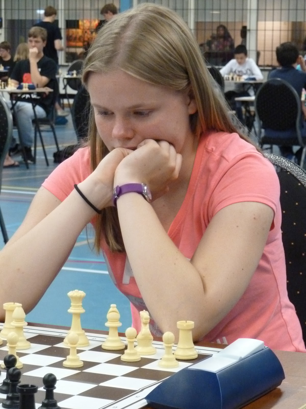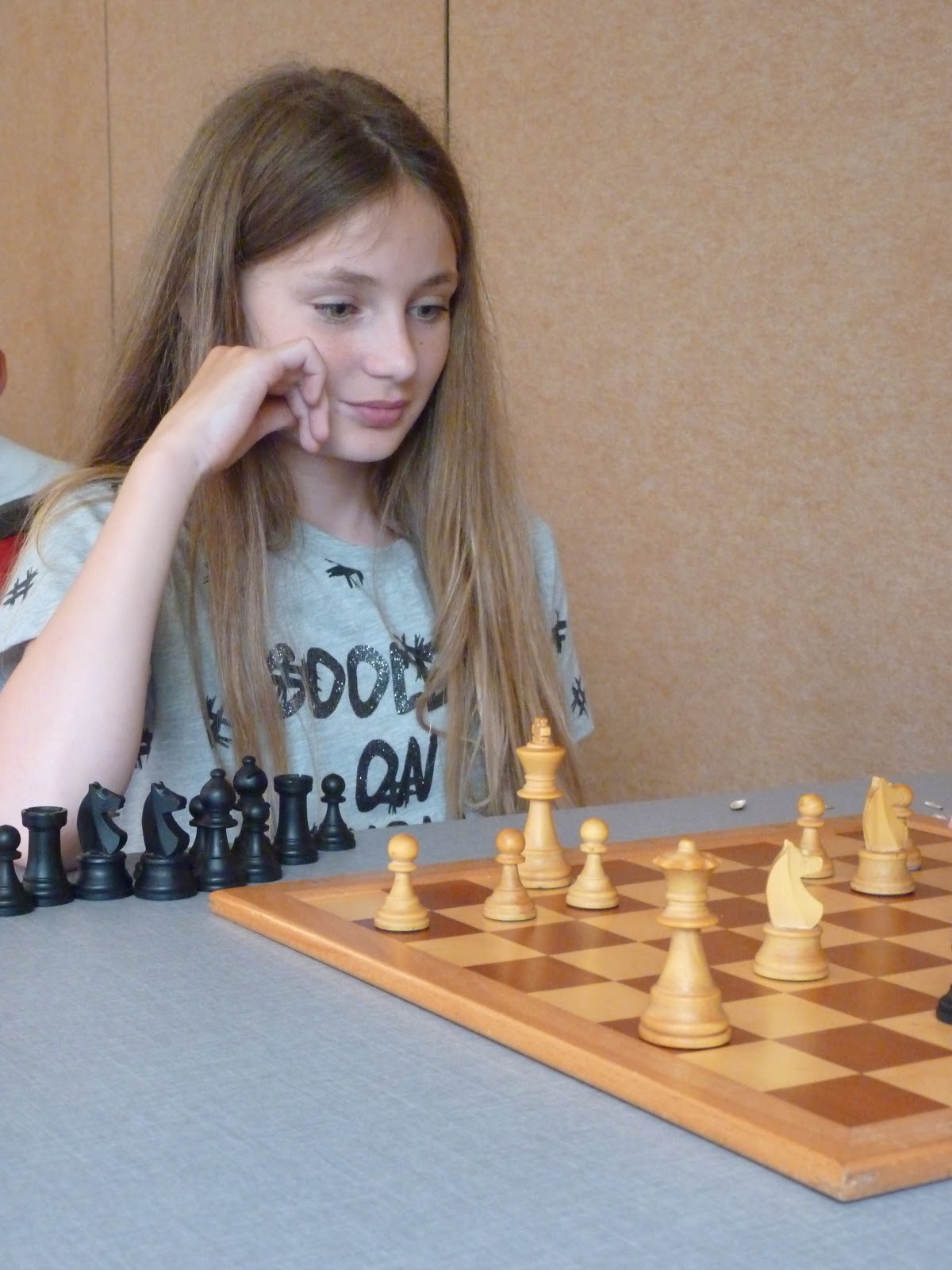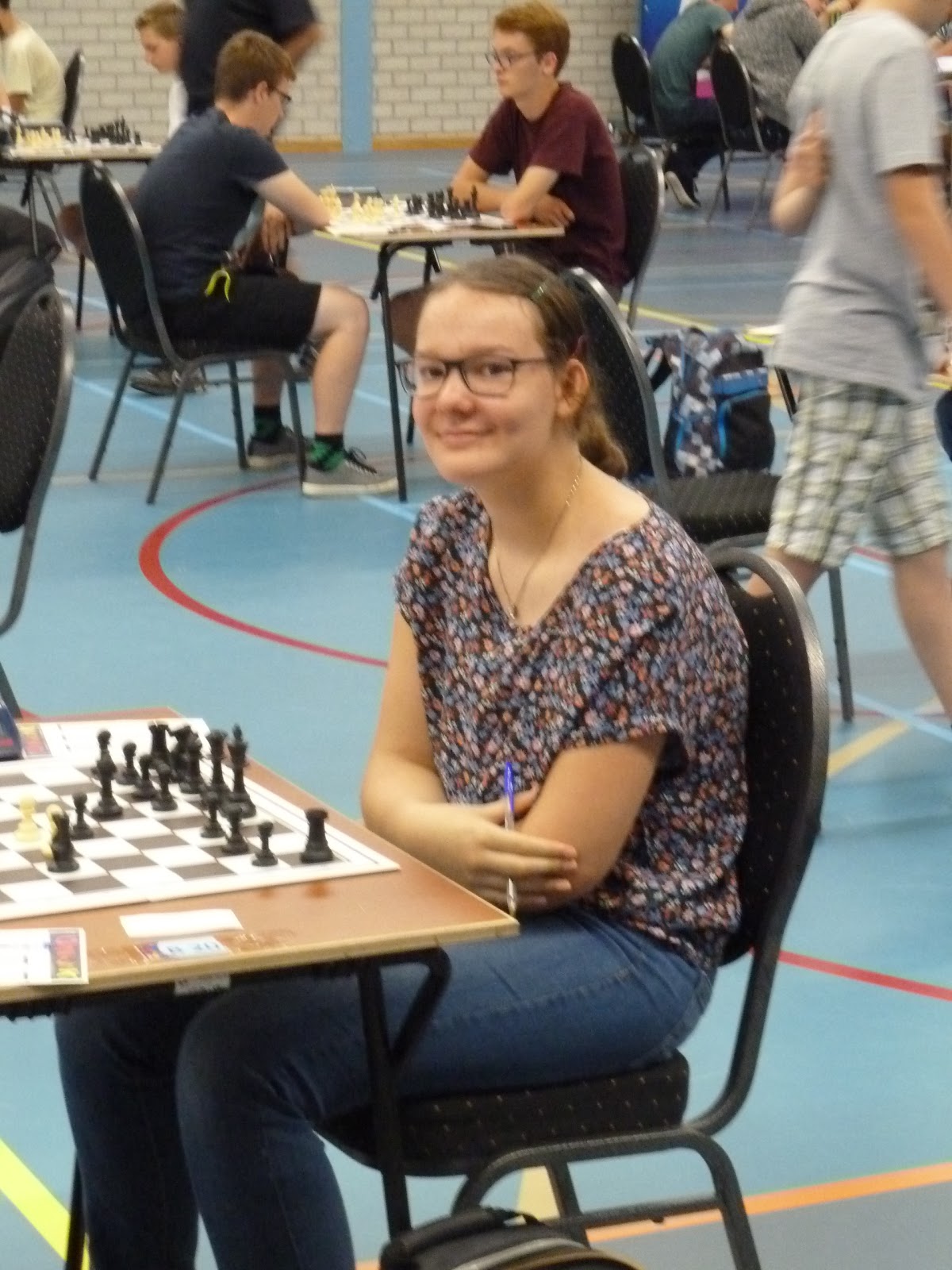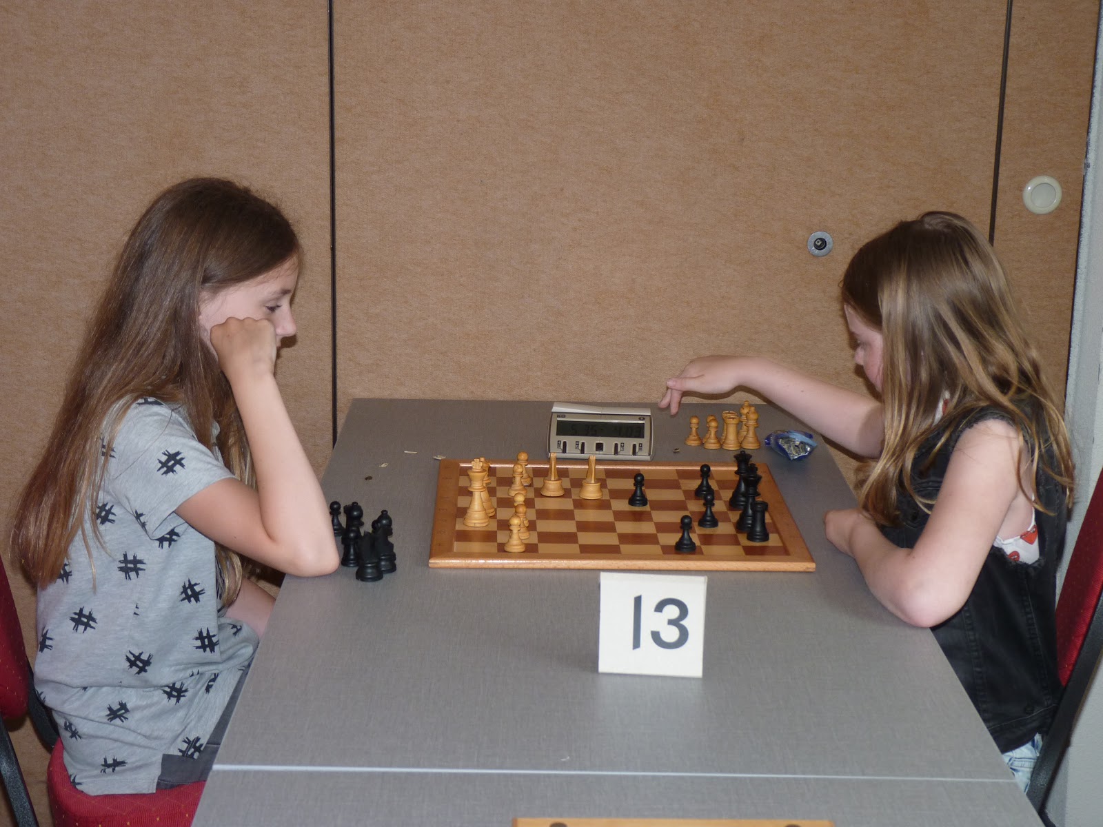 Gerbrich mist een valletje en het is de vraag of ze haar koning veilig weet te houden. Zwart heeft echter nog steeds zijn toren op a8 niet in het spel.