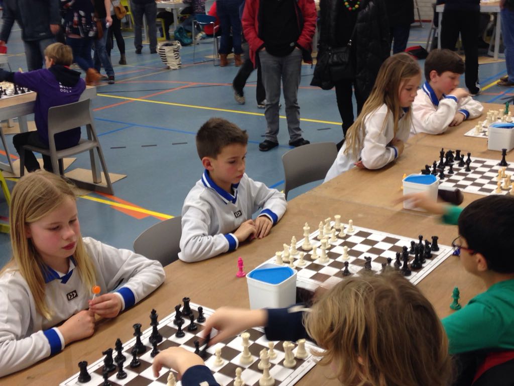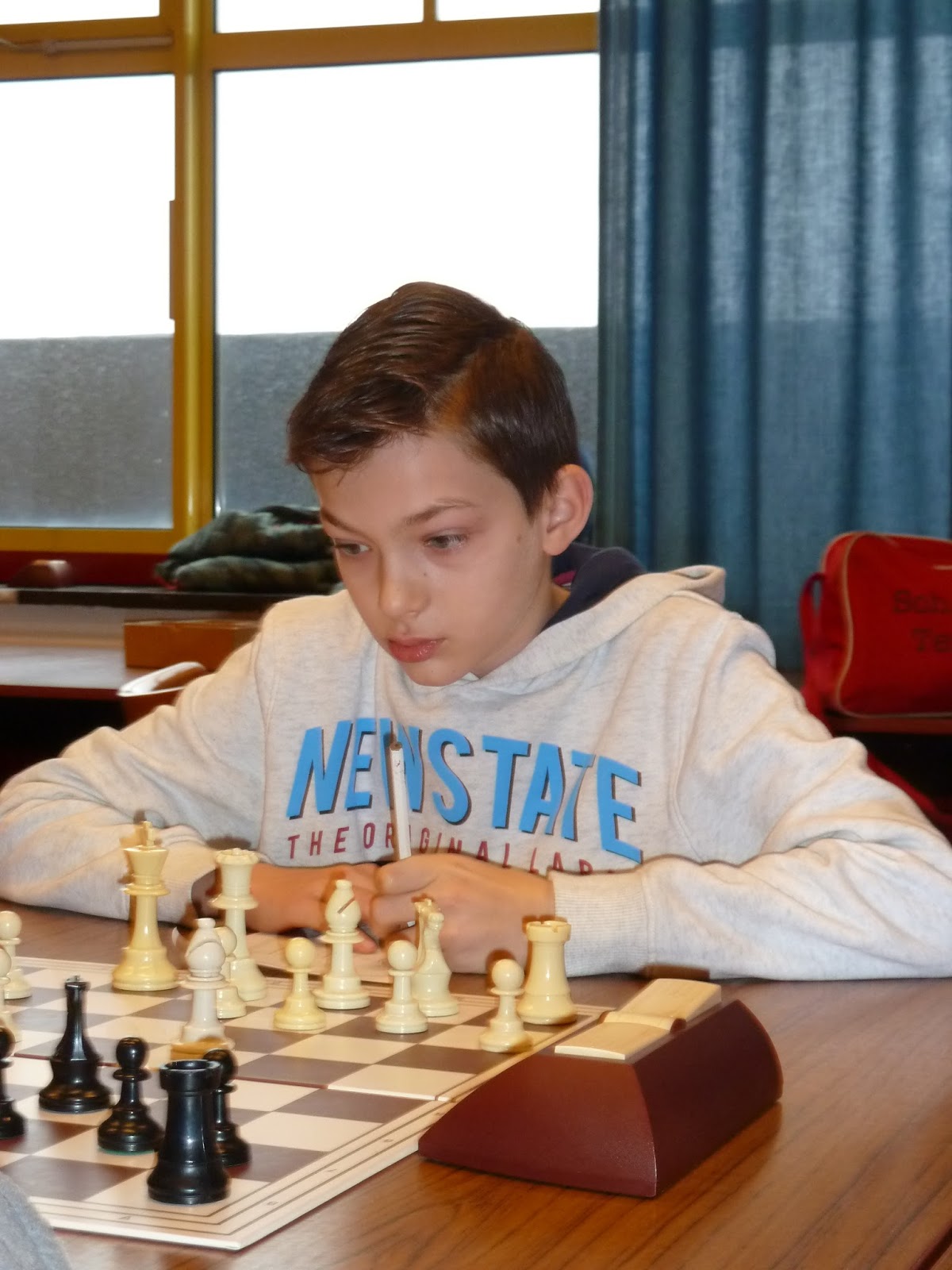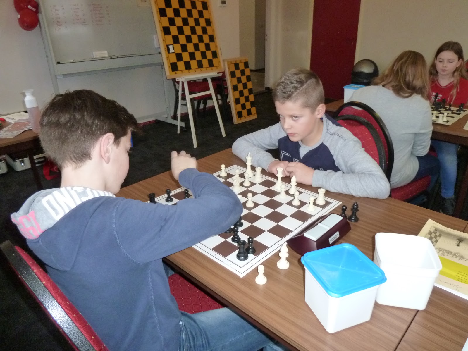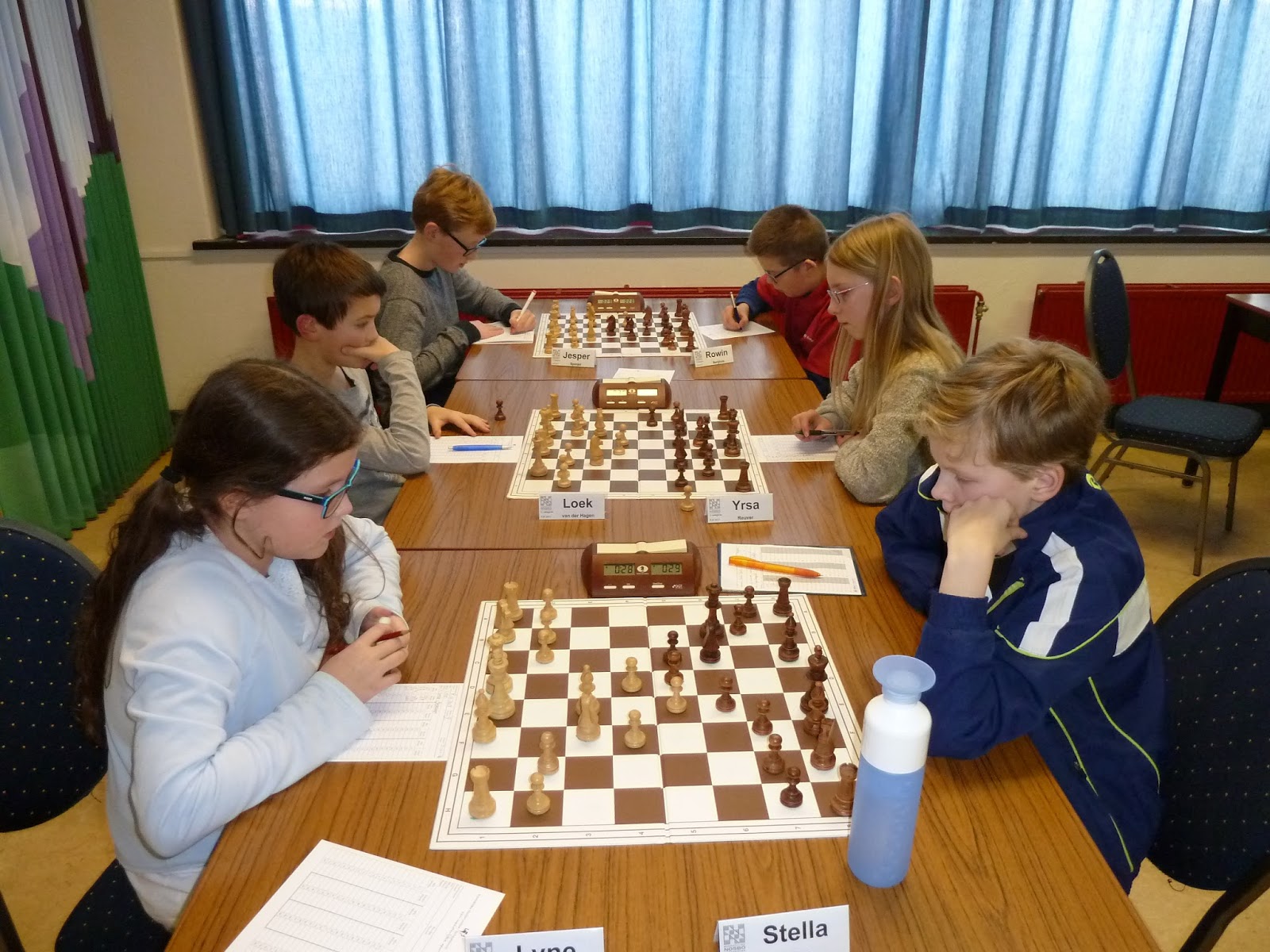 Ons eerste team leverde een goede prestatie. Van de vier wedstrijden wisten ze er twee te winnen. Joël en Daniël speelden heel rustig en dat gaf het goede voorbeeld voor Jovan en Sem, die ook rustiger probeerden te spelen. Joël wist zelfs bijna te winnen van Tobias, maar zette in gewonnen stelling pat.