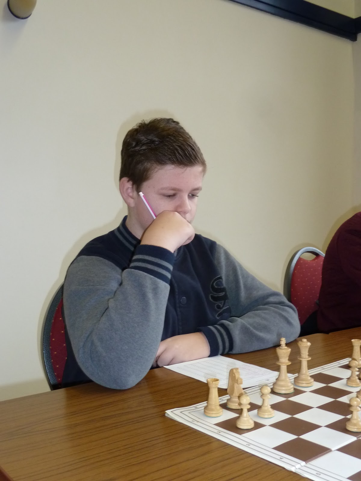 In de C-categorie hebben we de pechvogel van de dag. Dat is Rowin. Tegen Loek speelde hij een goede partij, maar uiteindelijk verloor hij doordat Loek sterker was. In de tweede ronde overspeelde Rowin Brian om een mat in één in totaal gewonnen stelling toe te laten. In de derde ronde miste hij een aftrekaanval tegen de altijd sympathieke Tobias en in de vierde ronde tegen Anna-Mae miste hij een paar dubbele aanvallen om meer tegenspel te bieden. Zo staat hij na dag 1 op 0 uit 5. Goed schaken en dan met lege handen staan.