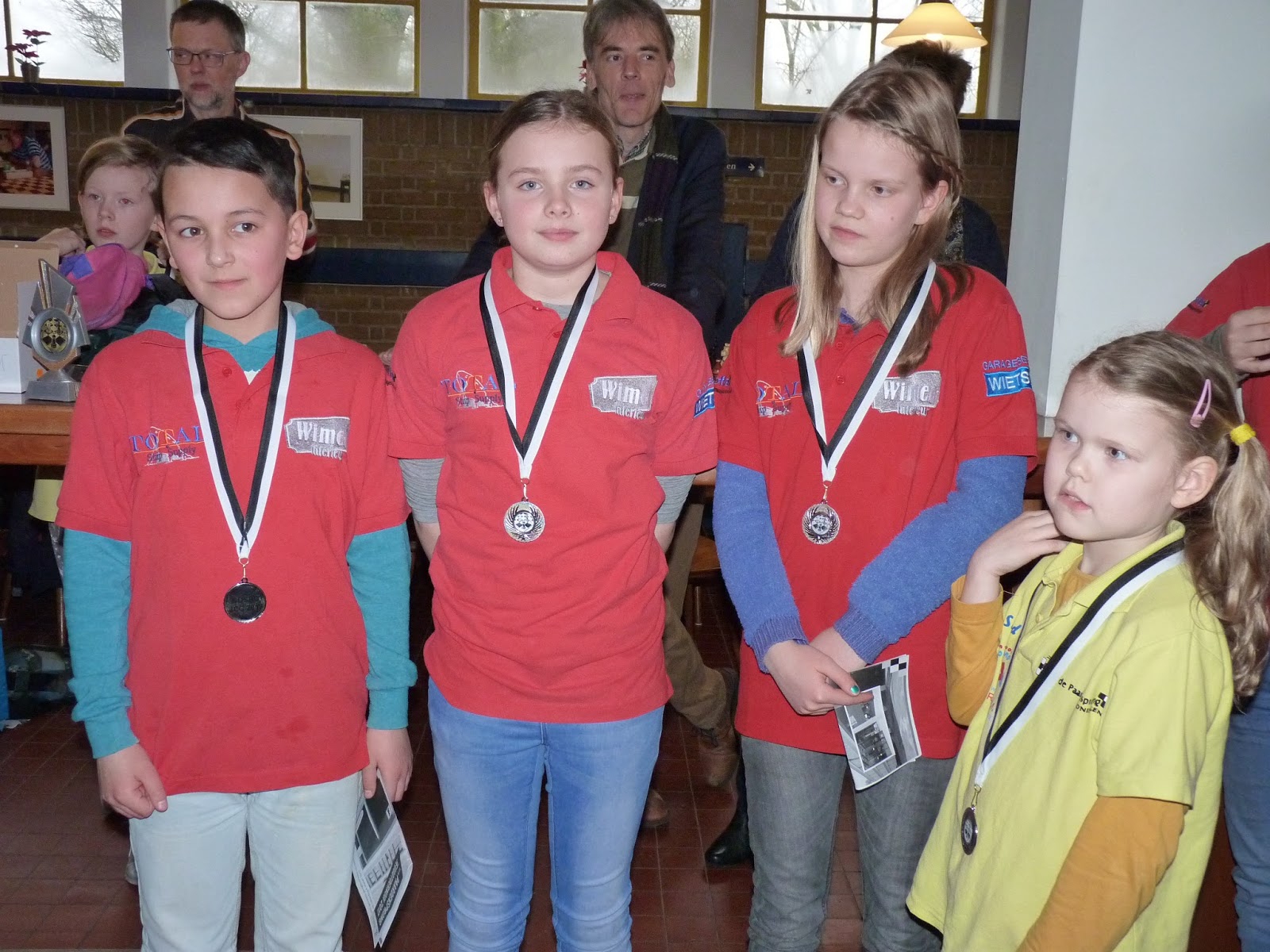 Voor Ten Boer zijn er dit jaar twee titels. Elisa werd meisjeskampioen van de F-categorie en Gerbrich bleef kampioen van de B-categorie. Een mooie prestatie. De Nosbo had voor de meiden geen aandenken aan de titel. Ik weet niet of dit de motivatie voor een volgend jaar doet groeien. Er was wel een prijs voor het beste meisje in alle categorieën, maar die ging tot mijn verbazing niet naar Elisa, die met 75% het beste scoorde in de F-categorie. En nog beter deed Stella het in de E-categorie met 87,5%!