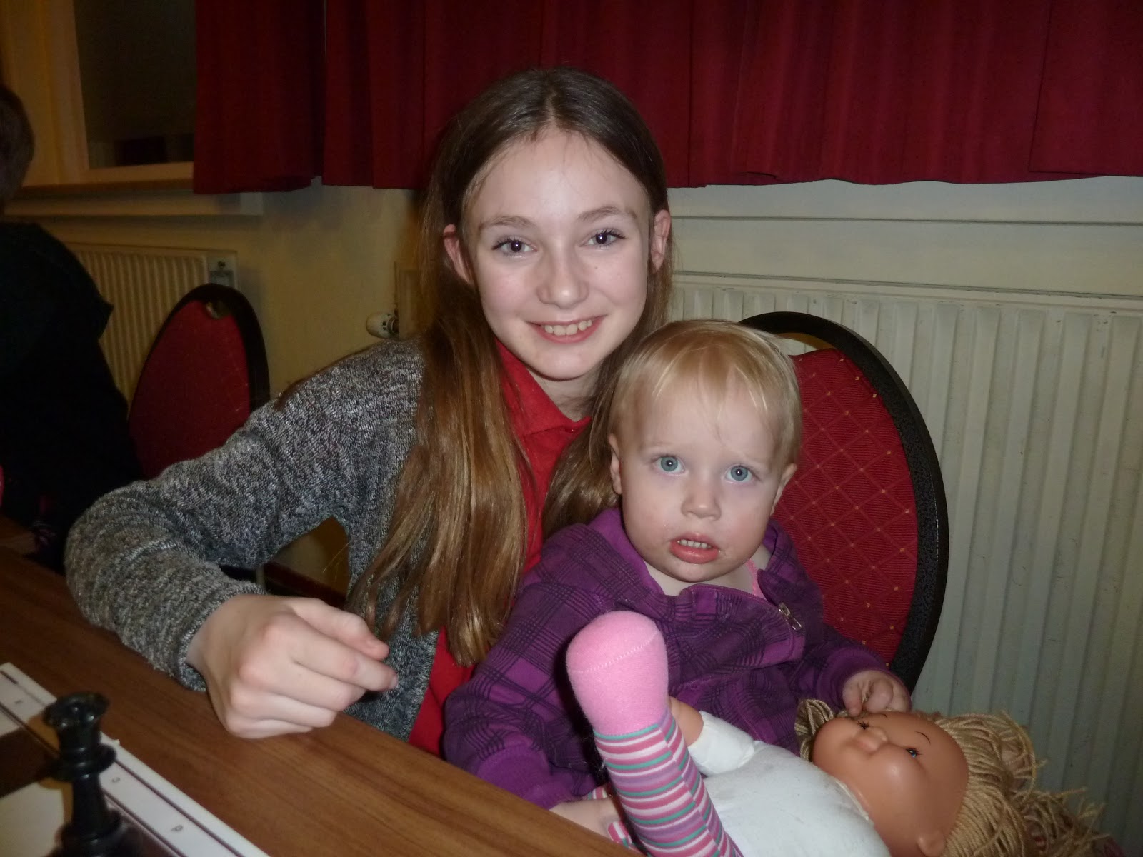 Anna-Mae heeft vandaag 1 punt gehaald. Haar vechtlust is en blijft fenomenaal. Alleen dan moet je niet te veel achter komen. In de eerste ronde tegen Stella liet ze zich in moeilijke stelling mat in één zetten. De familie Bruggink was te sterk, maar tegen Rowin won ze wel een leuke partij. En dan is er weer de glimlach!