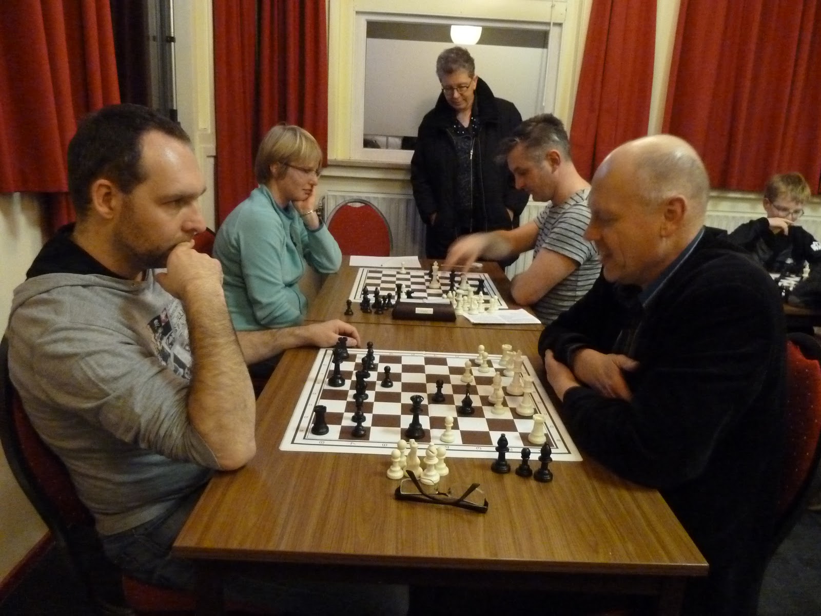 Om 7 uur gingen de volwassenen mee doen aan het schaken