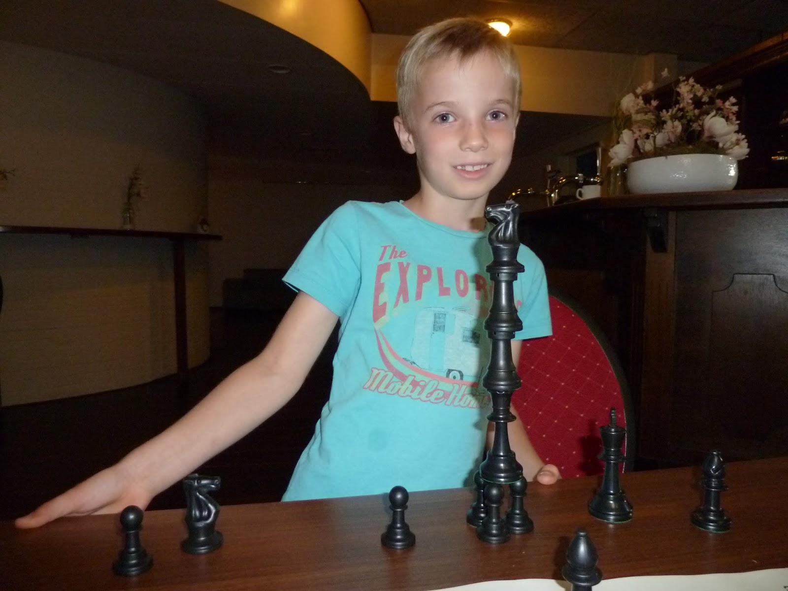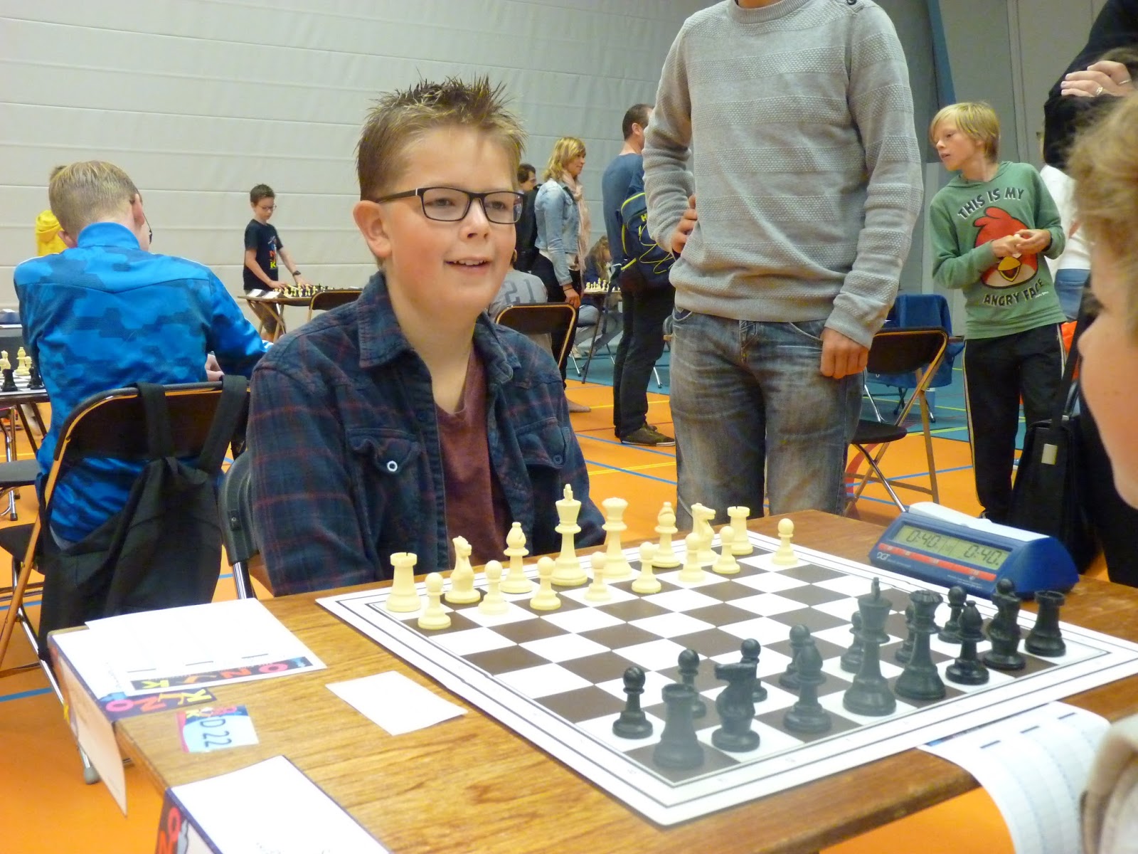 We beginnen bij Jarno. Jarno schaakte goed dit ONJK. En leuk om te merken: hij maakt sfeer op de camping.