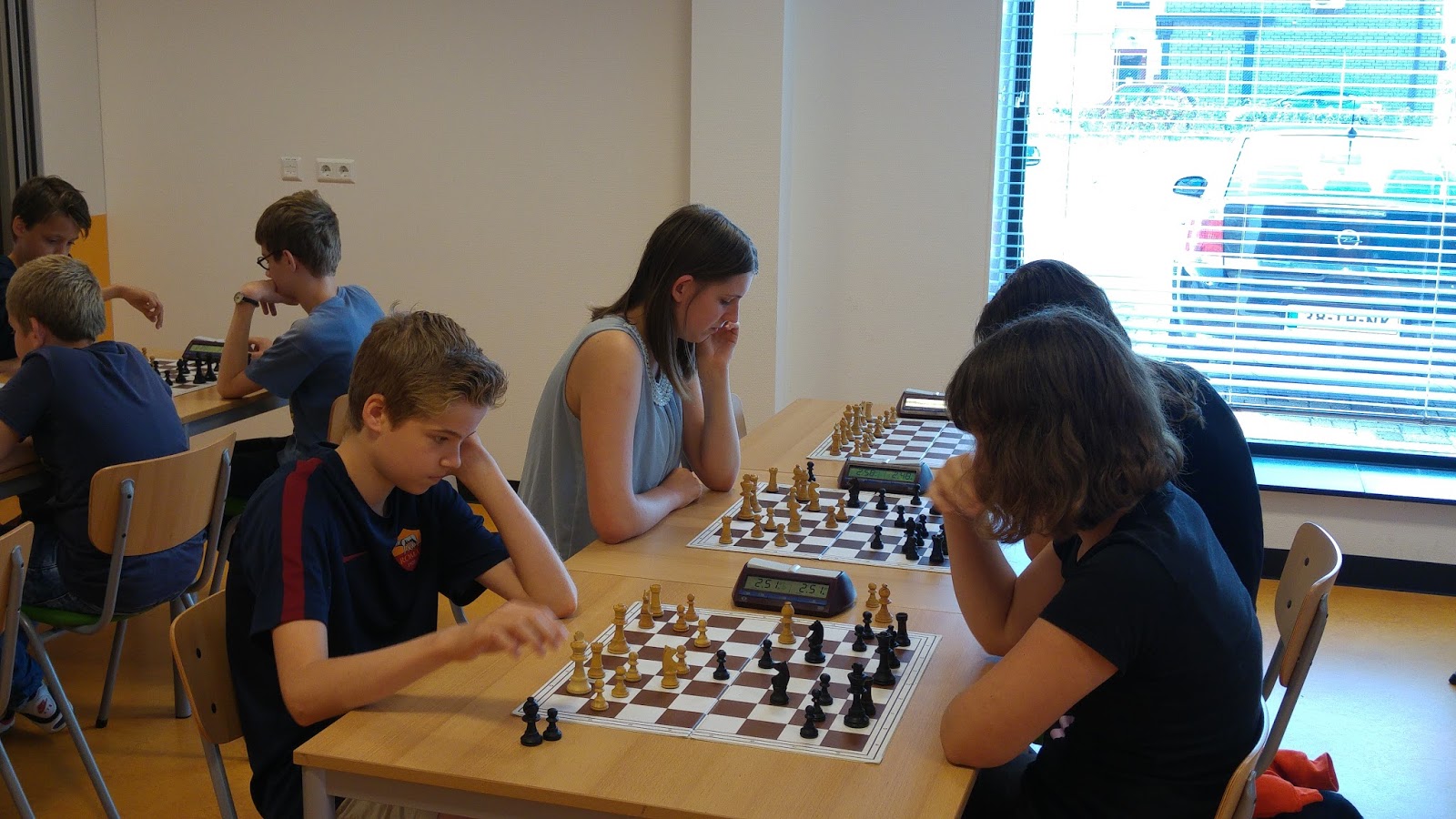 Een echt team overigens. Want na de partijen bleef men kijken hoe het met de andere meiden ging. En na afloop van de ronde samen naar buiten.