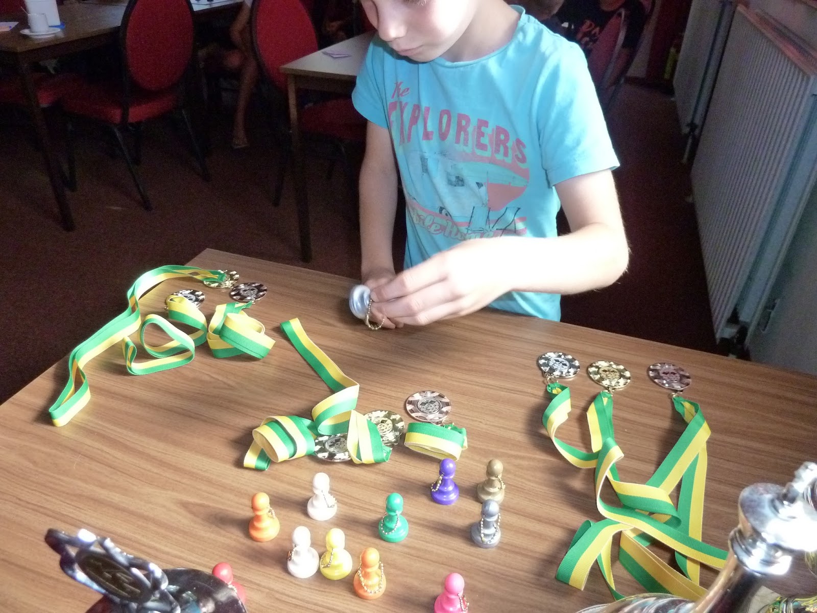 In drie groepen werd er gestreden om 3 medailles. Degenen die geen medaille wonnen kregen een sleutelhanger van de schaakclub.
