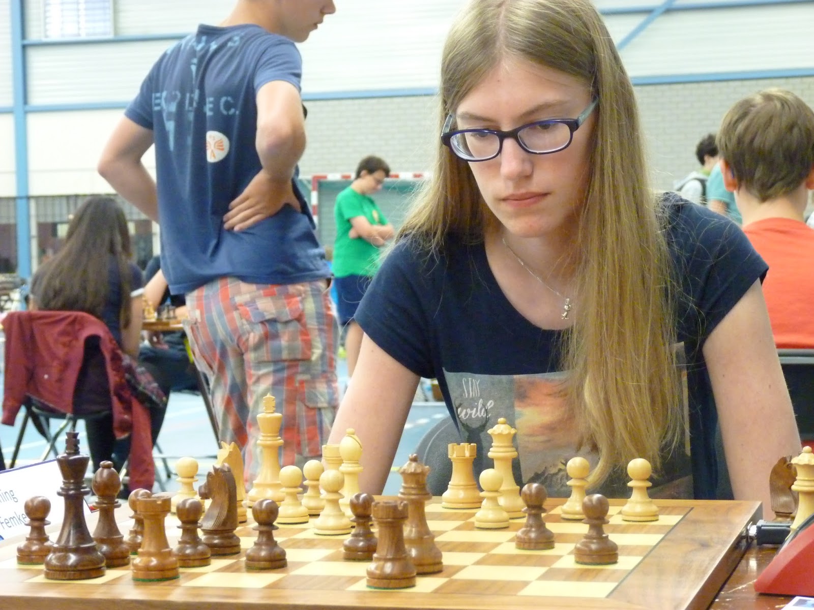 Femke speelde ook op een live bord en wist de nummer 1 van de B-groep nog veel langer bij te houden. Pas ver in het middenspel ging er iets mis.