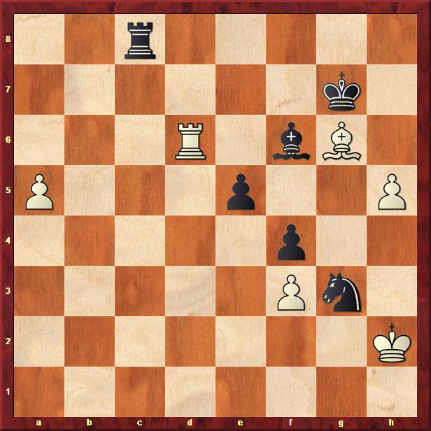 In deze stelling speelde Jonas 1. Kh3 met het idee de pion op h5 te dekken, zodat na een zet als Kg7-h6 geen mogelijkheid heeft om met het paard op h5 te slaan. Hij is zich niet bewust van het matnet waar hij in loopt. Toch lijkt dit objectief een goede (de beste?) zet. Ik zat zelf naar 1. a6 met het idee Td6-b6-b7 te kijken. De koning staat prima op h2! Zijn tegenstander ziet het matnet wel en speelt leep 1… Tc3?! maar nu heeft wit juist winstkansen na 2. Td7+ Kh6 (2… Kh8 3. a6) 3. Kg4 (nu wel) en zwart staat minder na 3… Pxh5 4. Lxh5, want 3… Lg7 4. Td6 lijkt me niet goed. Jonas gaat verder met zijn plan met 2. Kg4 Tc1 3. Td7+ Kg8 en nu kan wit minimaal remise halen met 4. Tb7 (eeuwig schaak) of zelfs 4. Tf7 proberen. Helaas speelt Jonas 4. a6?? en kan na 4… Th1 opgeven.