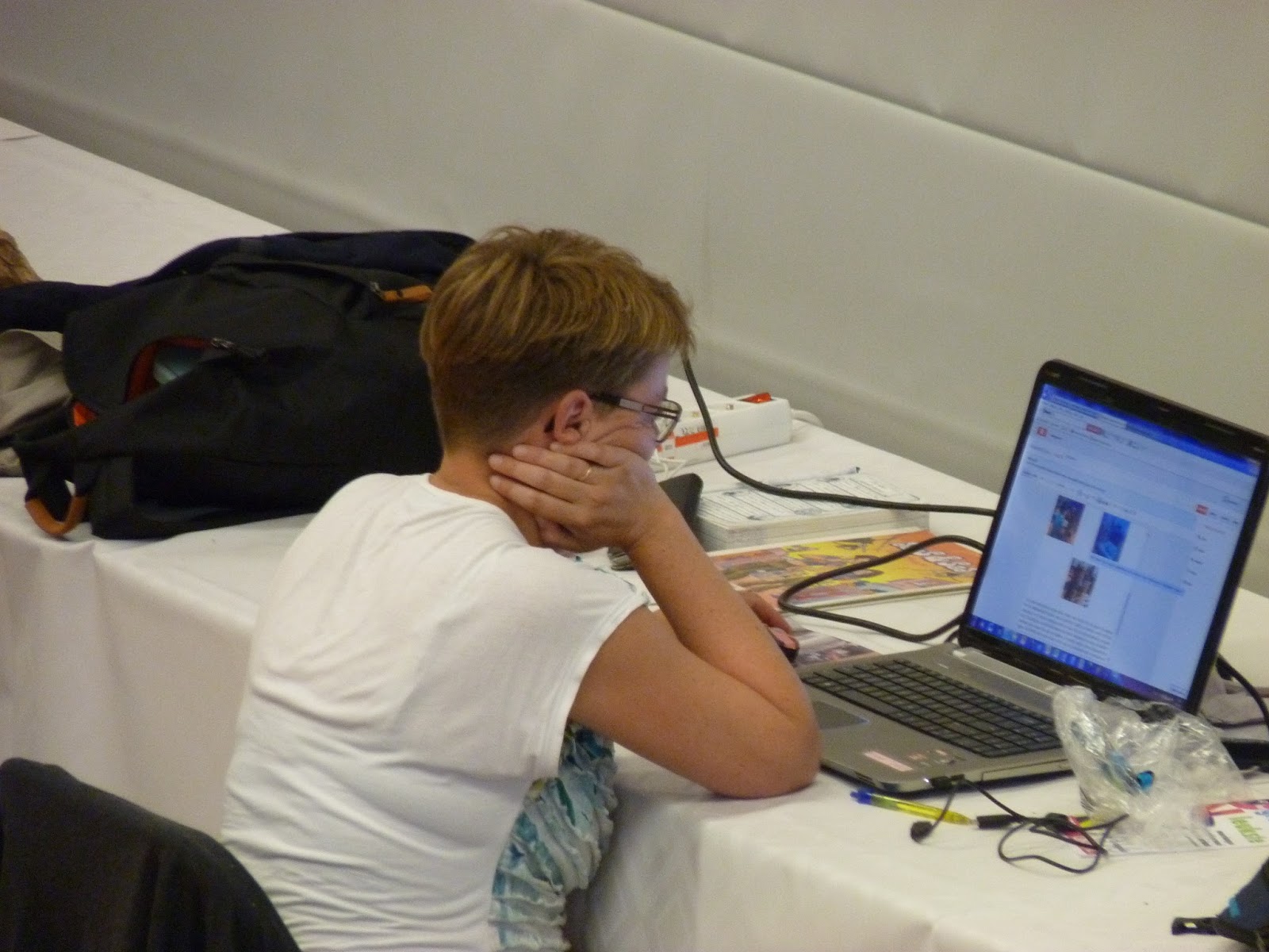 Het internet is niet optimaal. Roelof zit licht geïrriteerd foto’s up te loaden. Dat moet tussen 10 en half 11, want om half 11 zijn er al weer zoveel schakertjes klaar met hun partij, dat de filevorming voor het schrijven van stukjes te hoog wordt om te kunenn werken. Gelukkig heeft Simon, de man van onze Nosbo jeugdleider, verstand van internet en weet een by pass te regelen, waardoor we vanaf vanmiddag sneller kun uploaden.
