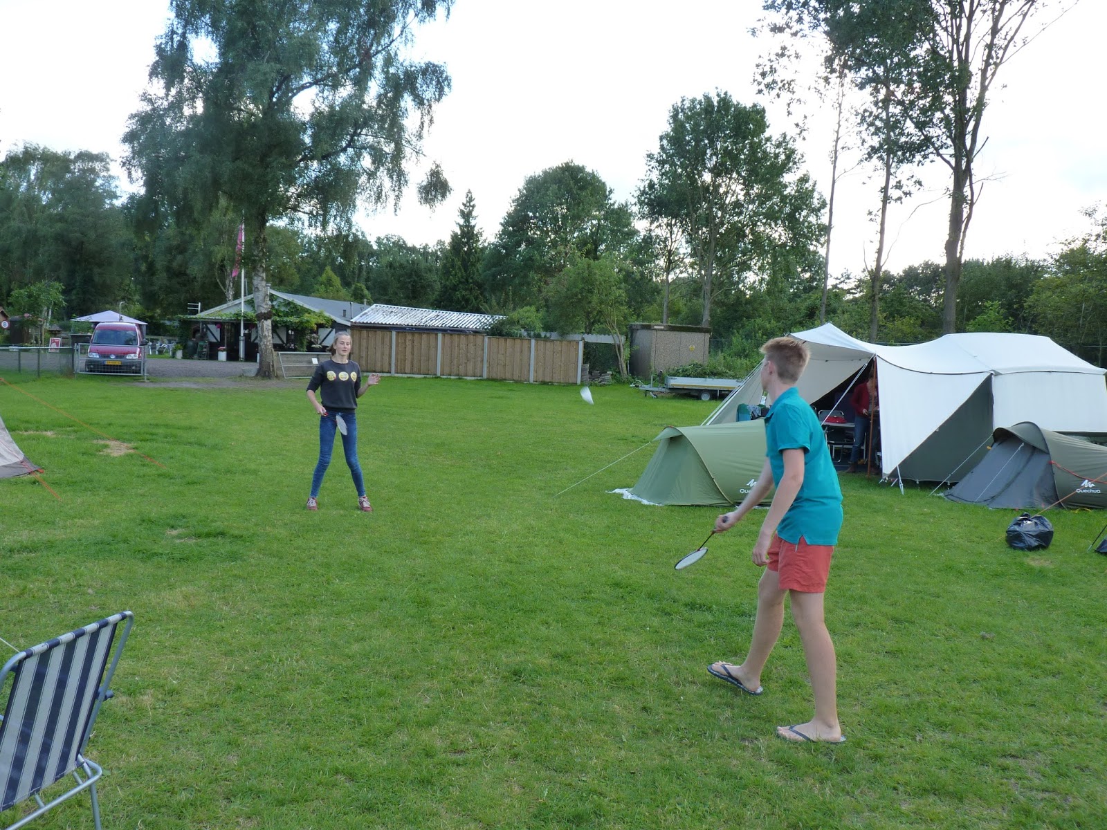 Gisteren was een goede dag bij het ONJK volgens onze jeugd. Toen ze ’s avonds bij het avondeten de score optelden, kwamen ze tot 391,7%. Jonas 100%, Femke 75%, Rowin 66,7%, Ilja en Lindert 50%, Gerbrich en Robin 25%. Kortom: men was het er wel over eens dat dat een ijsjes score zou zijn en er werd naar Roelof gekeken om te trakteren. Helaas was de temperatuur onder de 15°C geduikeld, dus toch geen ijsjes. In de druilerige regenflarden die over camping Mooi Delden zuchtten werd samen geschuild onder de luifels van de familie Bruins en Kroon.