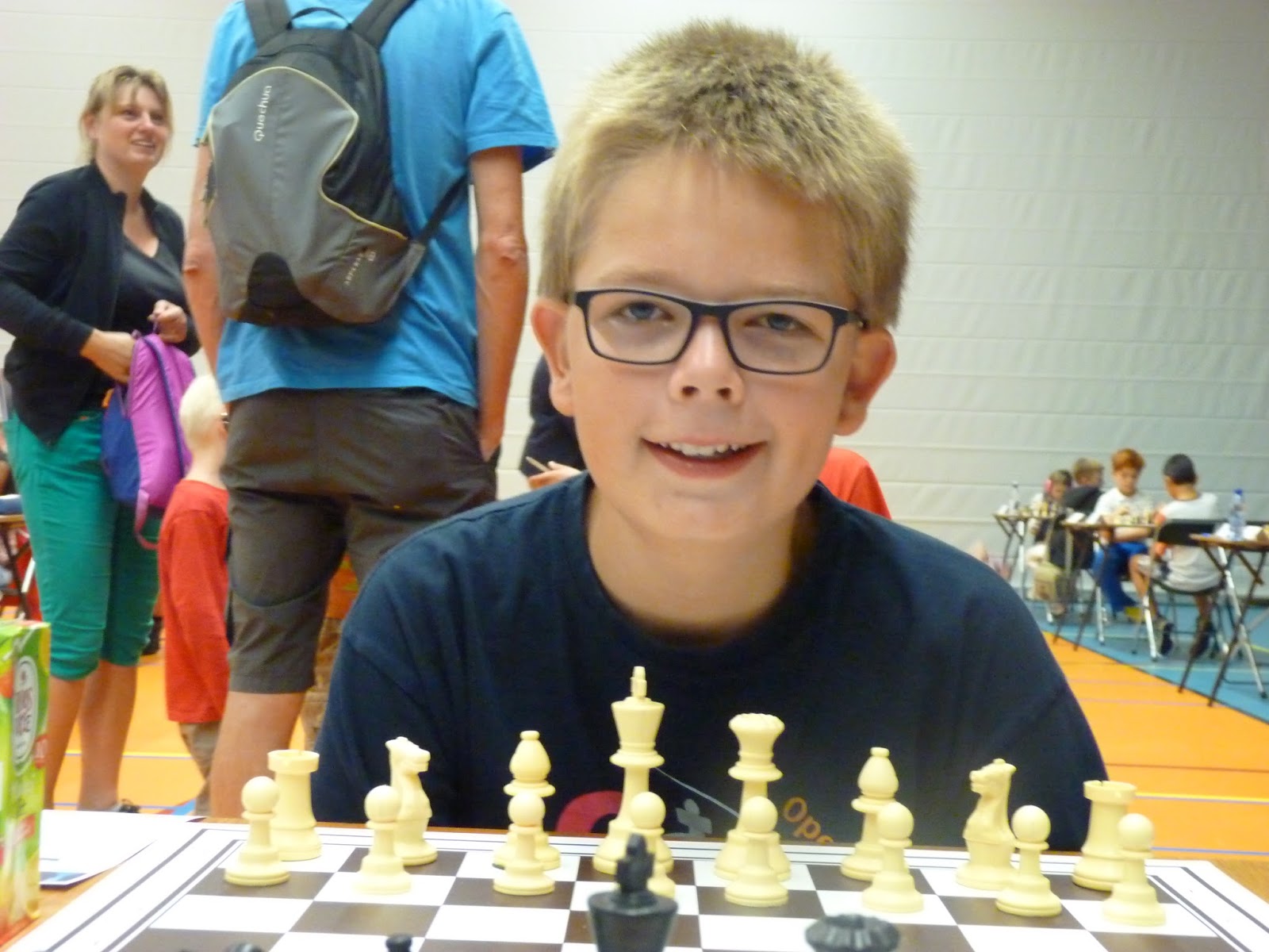 Rowin hield het heel lang vol tegen een Franse jongen met een rating van rond de 1500. Alleen zijn pionnenformatie was gehavend. Met een röntgenaanval verloor hij een toren. Rowin kwam nog terug met een dubbele aanval, maar de gaten op de koningsvleugel waren niet meer te dichten.