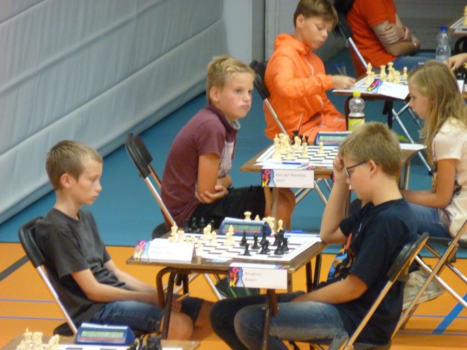 1 Op het ONJK wordt niet alleen geschaakt. Het is een ontmoetingsplek voor jongeren die van schaken houden (en ook van ouderen die van schaken houden en die elkaar het hele jaar door bij schaaktoernooien van hun kinderen ontmoeten). Er moet dus veel bijgepraat worden, gevoetbald, gegamed etc. en liefst zo snel en zo veel mogelijk.