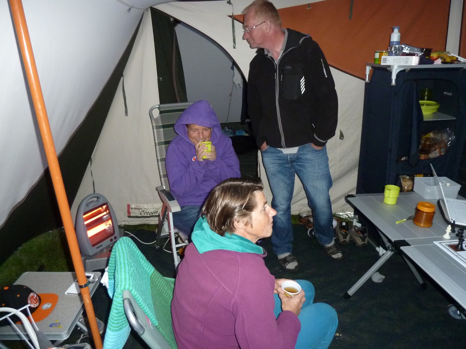 Volgens de nieuwsberichten was afgelopen nacht de koudste 11-augustusnacht sinds de weermetingen. In Twente daalde de temperatuur aan de grond tot rond het vriespunt. Het schaakgezelschap uit Ten Boer verblijft nog steeds op de camping in Delden, eveneens gelegen in Twente. Hoe is het gezelschap deze bitterkoude nacht doorgekomen? Een impressie.