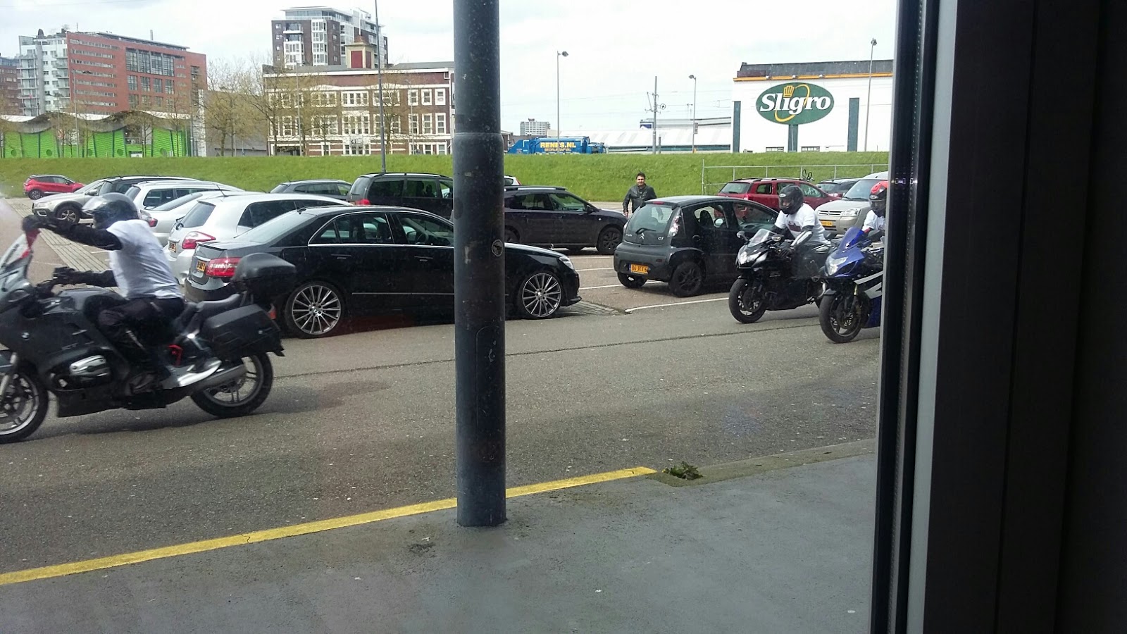 Het eerste dat opviel was dat een beveiligingsmedewerker een Turks ogende motorrijder aansprak op het feit dat hij zijn motor op de stop vlak voor de ingang van het Topsportcentrum had geparkeerd. Toen we beter keken was het niet één motorrijder, er stonden er wel drie. Stuk voor stuk stoere motoren, met nog stoerdere berijders in coole leren motorpakken. Het zag er niet bedreigend uit en de beveiligingsmedewerker lachte vrolijk terwijl hij de motorrijders aansprak op hun parkeergedrag. De motorrijders reageerden eveneens beheerst en bijna vrolijk op de beveiligingsmedewerker. Ze leken het eens te worden. De motoren bleven echter staan. Sterker nog, er kwam nog één aanrijden, en nog een, en nog een. Totdat er zo’n 20 motoren stonden. De motorrijders kenden elkaar duidelijk en ze waren iets van plan! Maar wat bleef nog even onduidelijk.