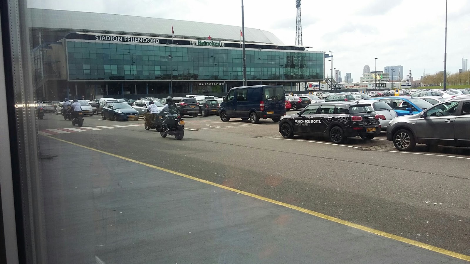 Gerbrich heeft een lijstje gemaakt van de mogelijkheden van het openbaar vervoer naar al deze bestemmingen, want dat is anders dan in Groningen, dus spannend en leuk. Er kan niks mis gaan, toch. Opgetogen vertrekken Gerbrich, Lindert en Mariska in de auto richting Rotterdam. Het spannende onderdeel van de reis is de afrit vanaf de A15. Vorig jaar gaf de TomTom steeds net iets te laat de afrit aan, wat diverse keren leidde tot een omweg. Na een update blijkt dit nu wel goed te gaan. Opgetogen en zonder omrijden vinden we De Kuip en dus het Topsportcentrum. Vandaar nemen we tram 23 richting centrum. Even na de Erasmusbrug stappen we uit. We hebben volgens Gerbrichs lijstje twee opties: verder reizen met tram 8 of een stukje met de metro. Lindert moet en zal met de metro, dus we dalen af tot beneden Maasniveau, waar vervolgens blijkt dat de metrolijn die wij moeten hebben, hier niet langs komt.
