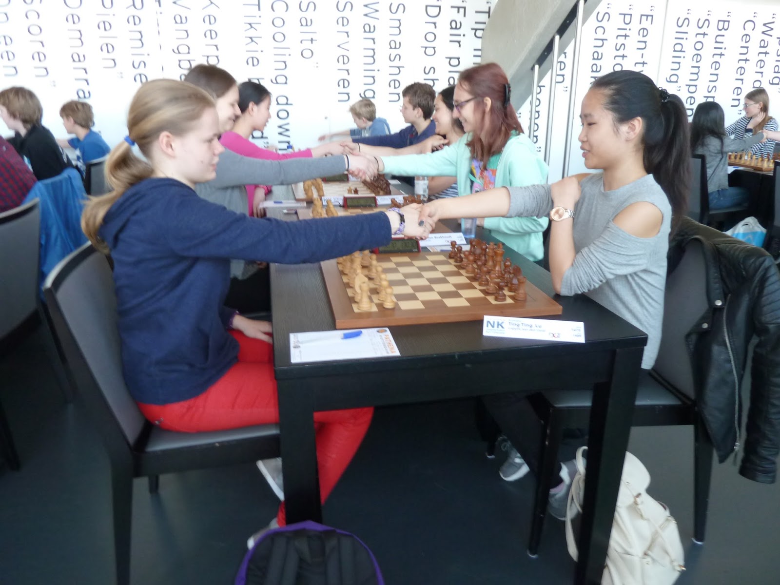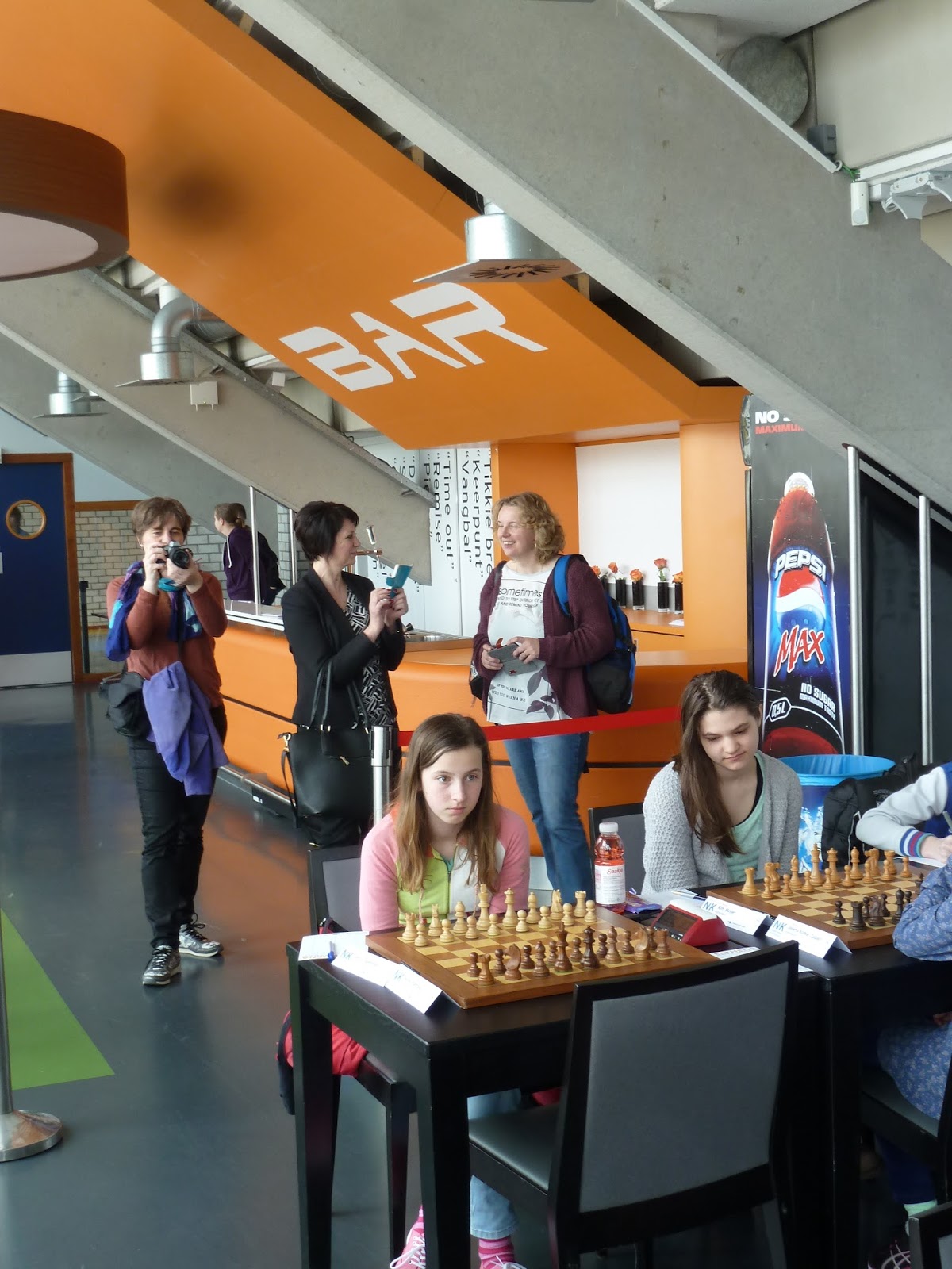 Gerbrich moet vandaag eerder aanwezig zijn. Samen met Ilja zijn we rond 10 over 10 bij het Topsportcentrum voor de sobere openingsplechtigheid. De opening bestaat uit het trekken van de kleur aan bord 1. Iris Schelleman trekt zwart en dus mag Gerbrich met wit tegen Ting Ting. Dat is jammer, want Gerbrich heeft vooral zwart voorbereid met Migchiel.