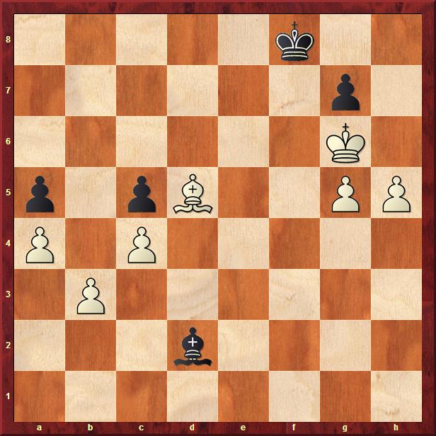 Toen ik na afloop vroeg waarom hij geen 1. h6 speelde zei hij dat hij niet zag hoe hij verder moest komen na 1… gxh6 2. gxh6 Lc3. En ook kwam er niet uit. Het lijkt er op dat wit niet met zijn koning bij de damevleugelpionnen kan komen. Daarom speelde hij 1. Kf5 en 2. g6 om tenslotte met de koning naar de damevleugel te gaan, terwijl de zwarte loper h6 in de gaten moet blijven houden. Na de opstoot b3-b4 wist hij de partij te winnen.