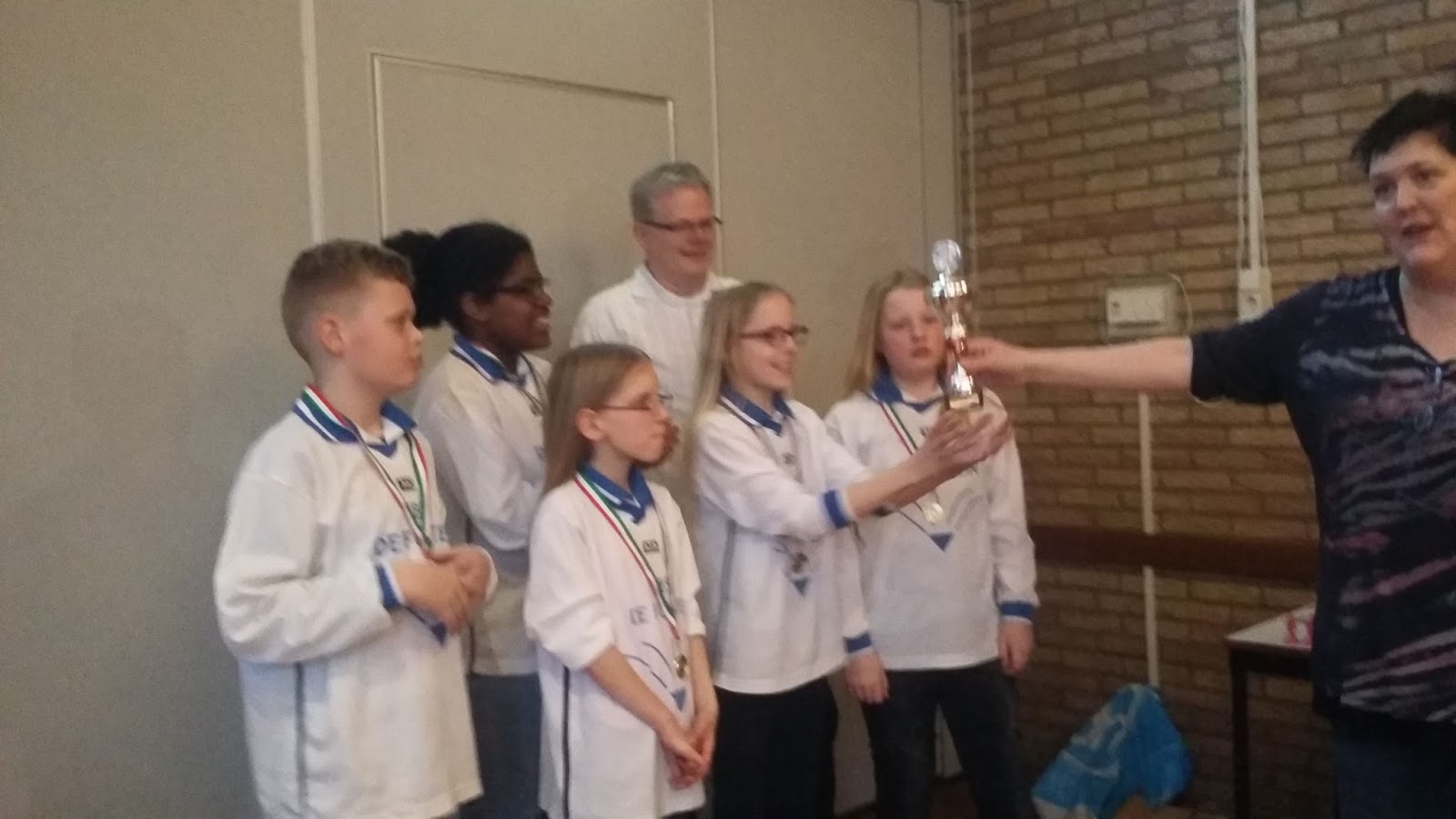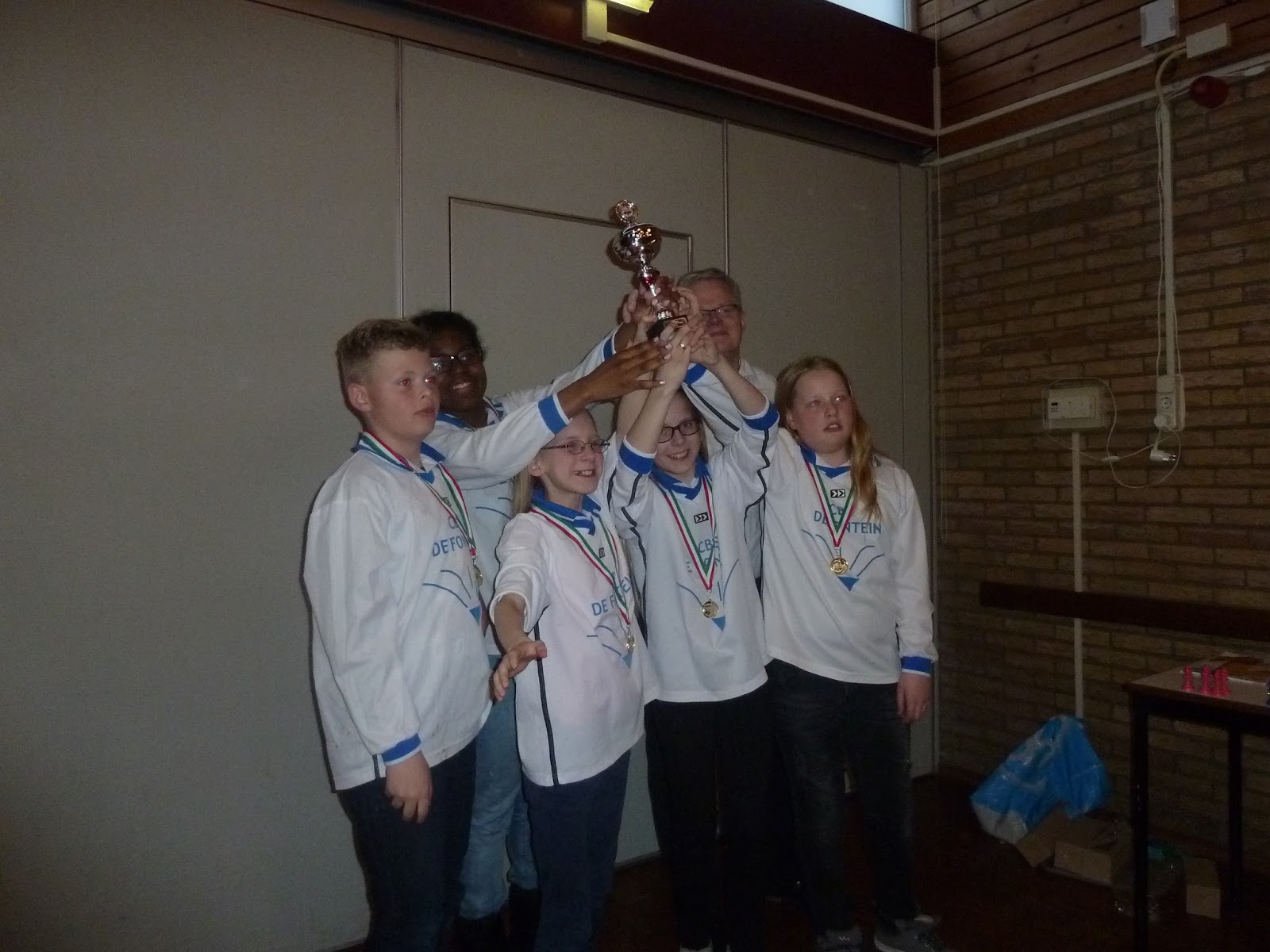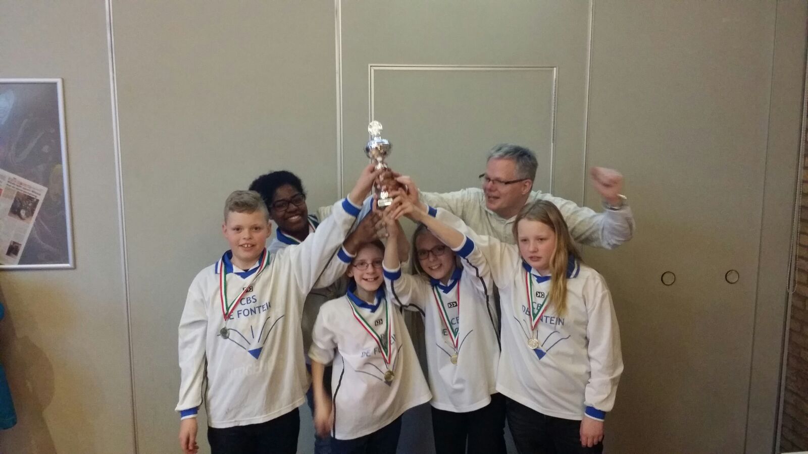 CBS de Fontein is vanmiddag kampioen schoolschaken van de provincies Groningen en Drenthe geworden. Het team was in de breedte het sterkste van het veld. Met vijf overwinningen en vier gelijke spelen eindigde het team twee matchpunten boven de GSV en Dom Helder Camara. Het team bestaat uit Mieke Nissen, Anna-Mae Takang, Yrsa Reuver, Hilde Mulder en Joël Greven.