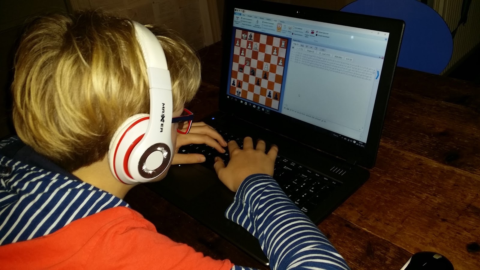 Zoon Joppe werd bereid gevonden op zijn laptop met behulp van Fritz de partij