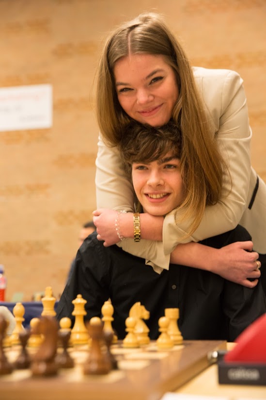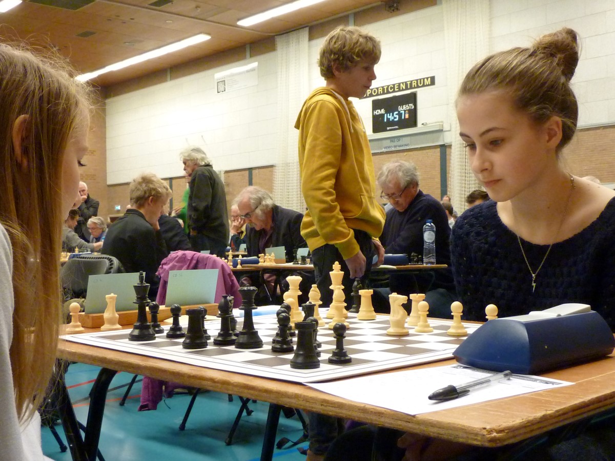 Nog steeds geen foto’s van onze jeugd. Misschien dat men wat bang is voor de nabewerking van Erwin op deze site. Daarom maar het volgende prachtige plaatje van Harry Gielen van Gronings hoop, Jorden van Foreest en zijn vriendin (?). Jorden staat een punt los van zijn concurrentie in de Open groep. Vandaag won hij een toreneindspel van Migchiel de Jong, de trainer van Gerbrich.