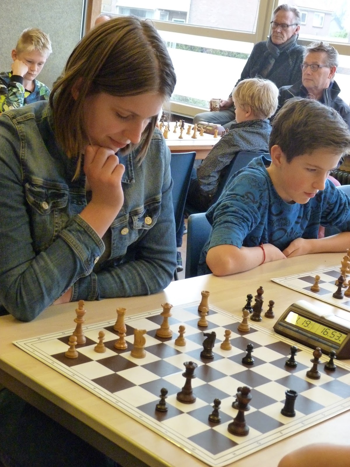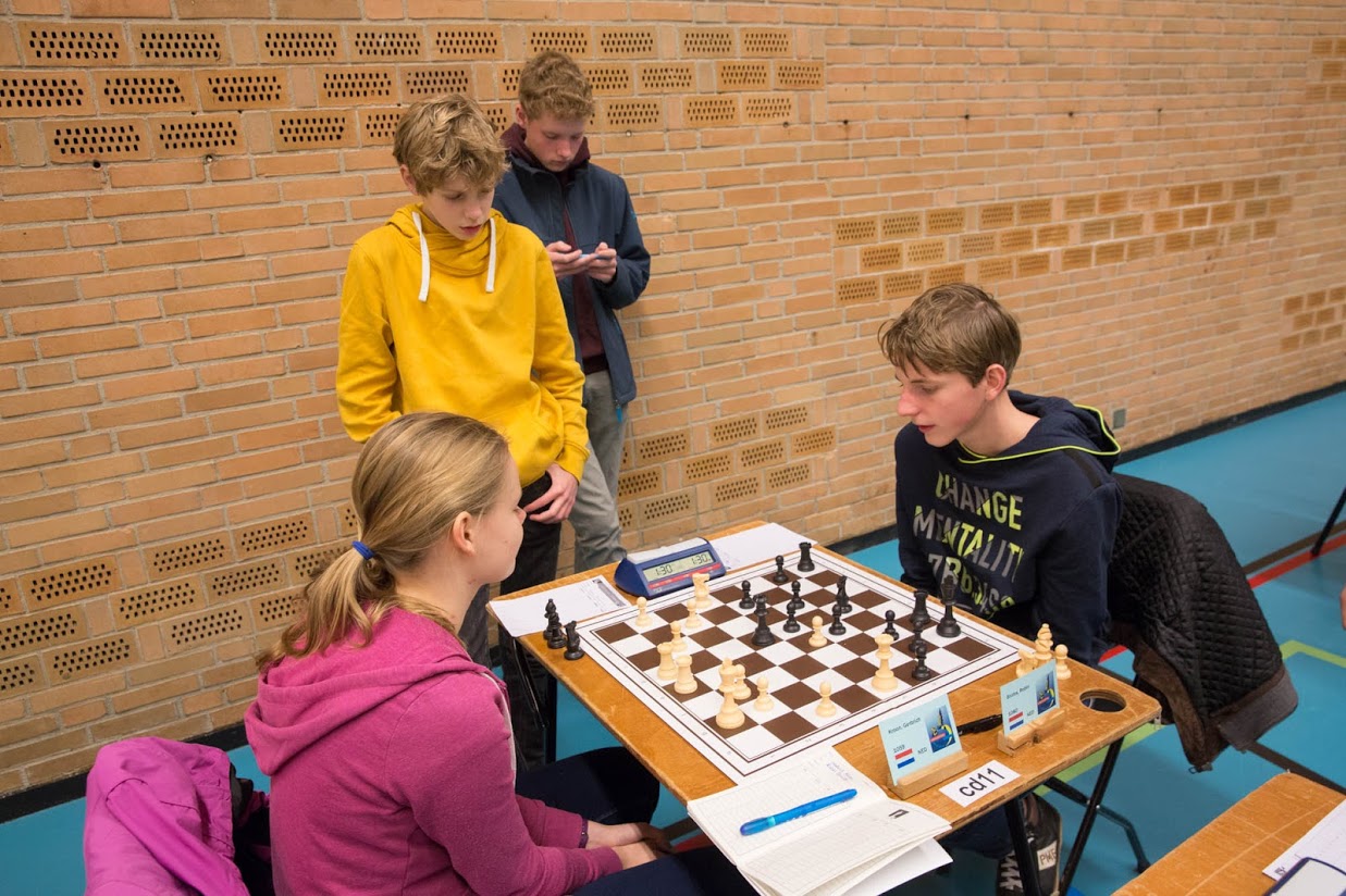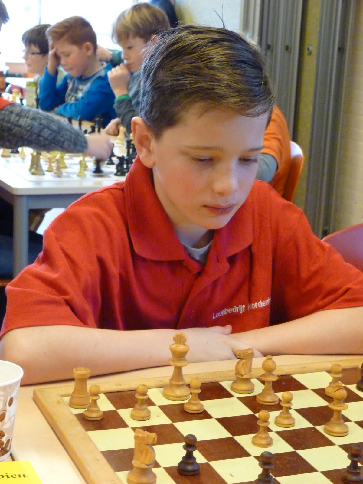 Robin speelde een wisselende partij tegen Ella Welling. Ella stond heel goed en leek te gaan winnen. Robin kromde zijn rug en ging er nog eens goed voor zitten. En dat hielp: hij won. Dat geluk verdiende hij ook wel een keer na de afgelopen twee dagen. Morgen tegen Gerbrich: dat is minder geslaagd.