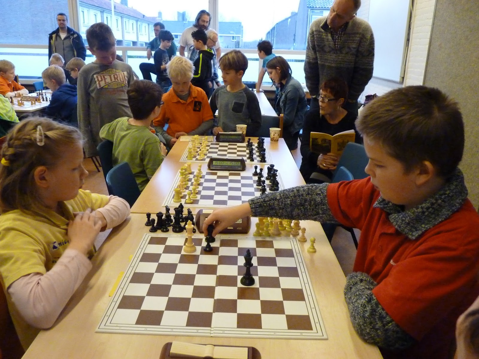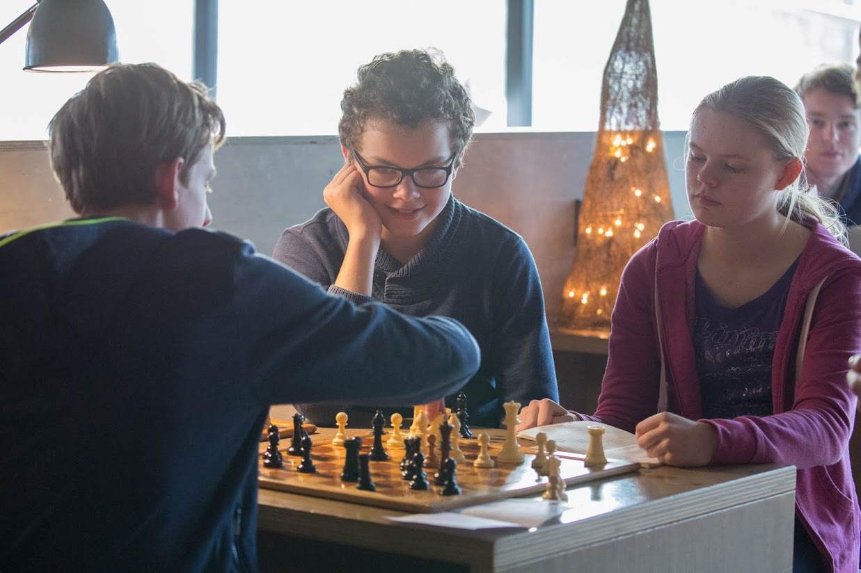 Vandaag begon voor onze zes jeugdspelers het Mini toernooi op het Schaakfestival. Vier van onze schakers waren aan elkaar gekoppeld. Ilja speelde met wit tegen Robin, die eerst tegen Jarno moest spelen. Gelukkig werd deze wedstrijd niet gespeeld en moest Jarno tegen de eerdere tegenstander van Ilja: Remy Netten. Deze kwam alleen niet opdagen, zodat Jarno uiteindelijk met wit tegen Arend Bensink speelde. Daan speelde met wit tegen Gerben en Gerbrich speelde met wit tegen Gerk Numan.