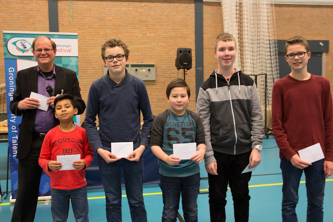 Gisteren heb zes van de jeugdschakers meegedaan aan de GP de Donger in Dokkum. Roelof kon niet meegaan vanwege verplichtingen in de landelijke schaakcompetitie in Zwolle, dus stond het zestal onder begeleiding van Dirkjan en de ouders van Rosalie. Veel dank daarvoor.