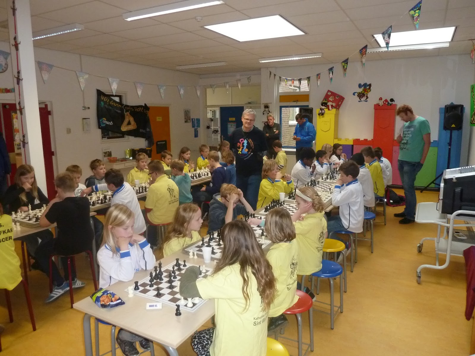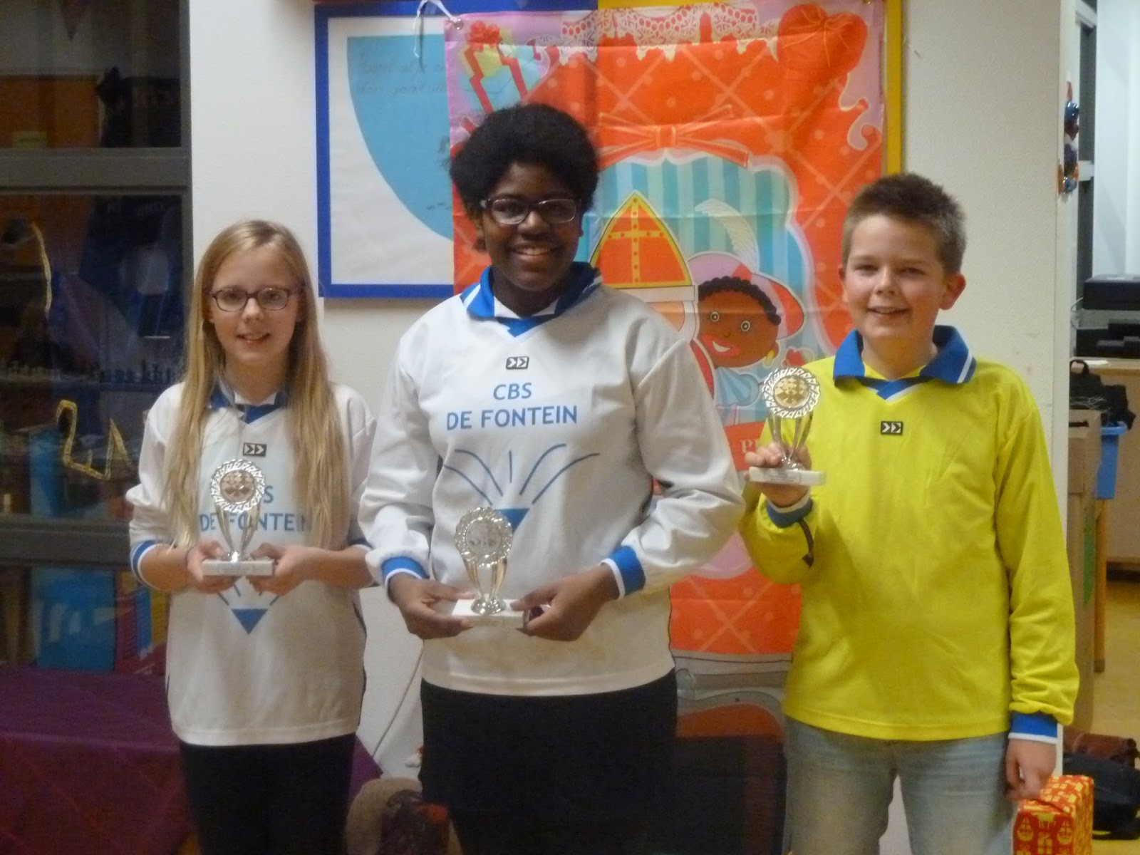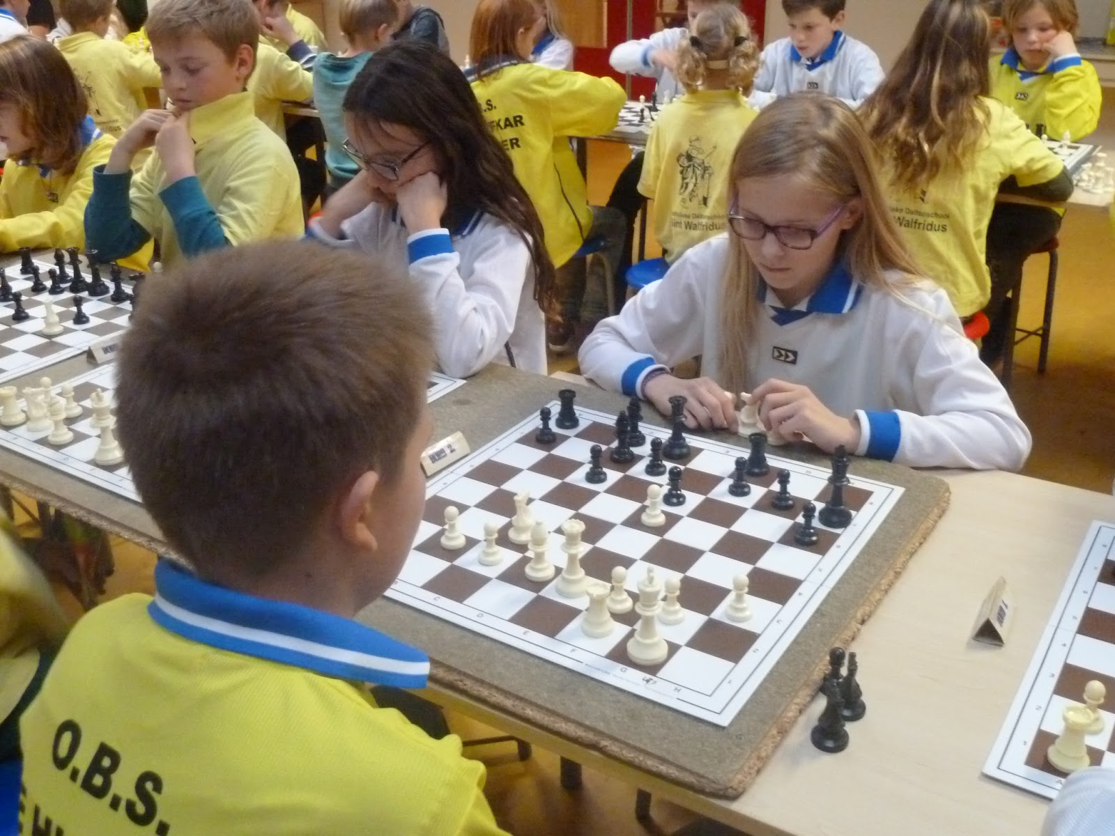 Toch is de begeleiding (Erwin, Jantine, Dirkjan en Roelof) geweldig trots op dit team. Men heeft gestreden, is boven zichzelf uitgestegen. Joppe wist in de tweede ronde zijn eerste punt binnen te halen. Hiermee haalde hij het gelijke spel binnen. En nog wel door mat te zetten met zijn favoriete stuk: een loper. In elk geval was deze bisschop hem beter gezind dan de kindervriend die eerder aan ons team voorbij liep.