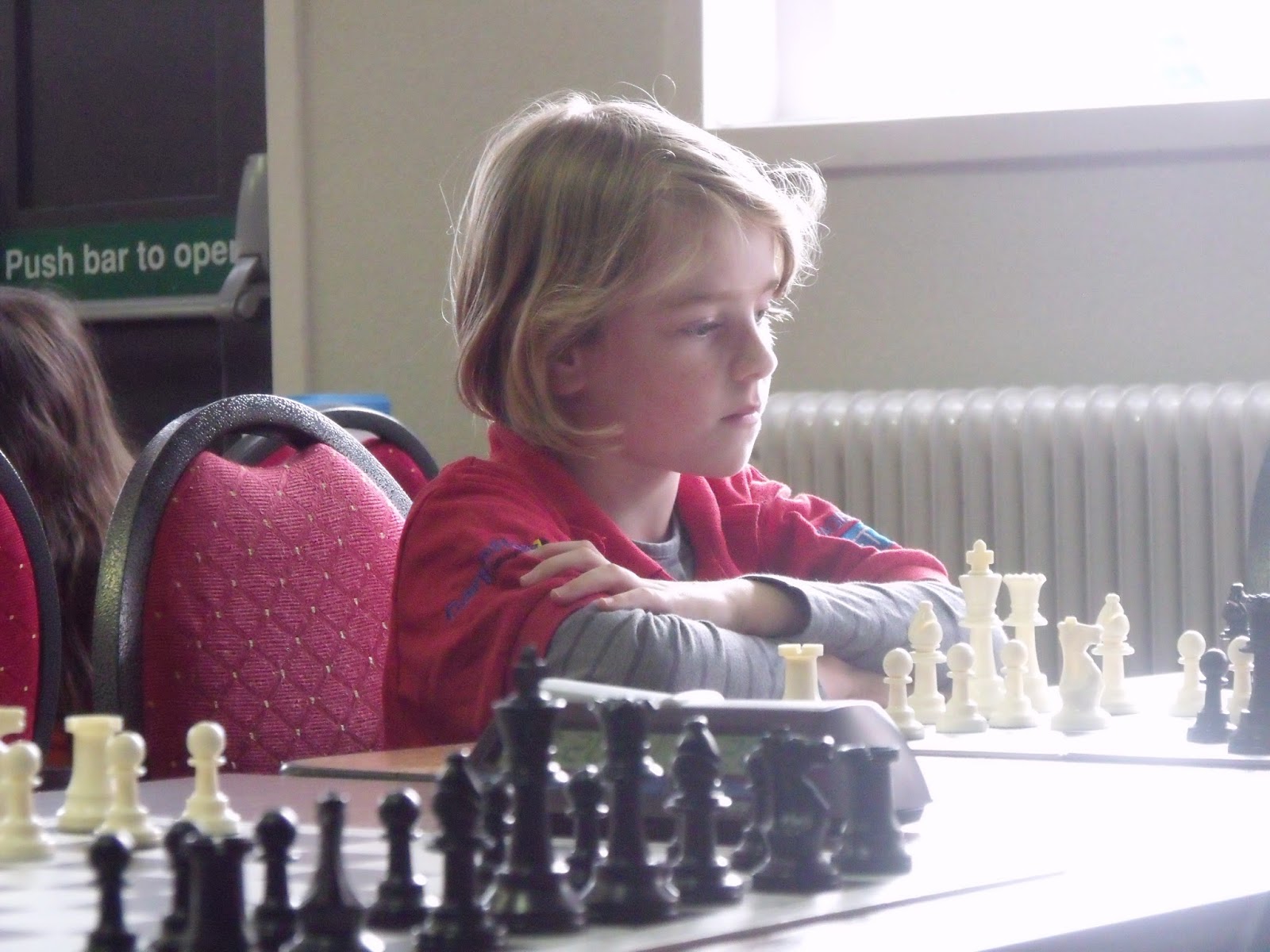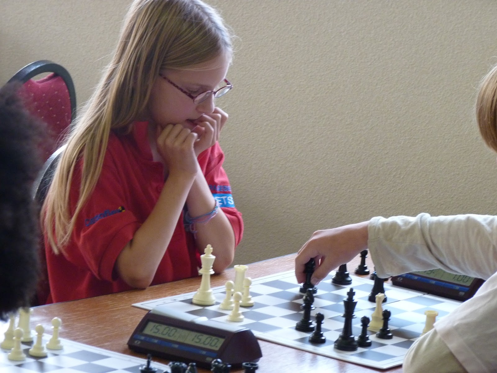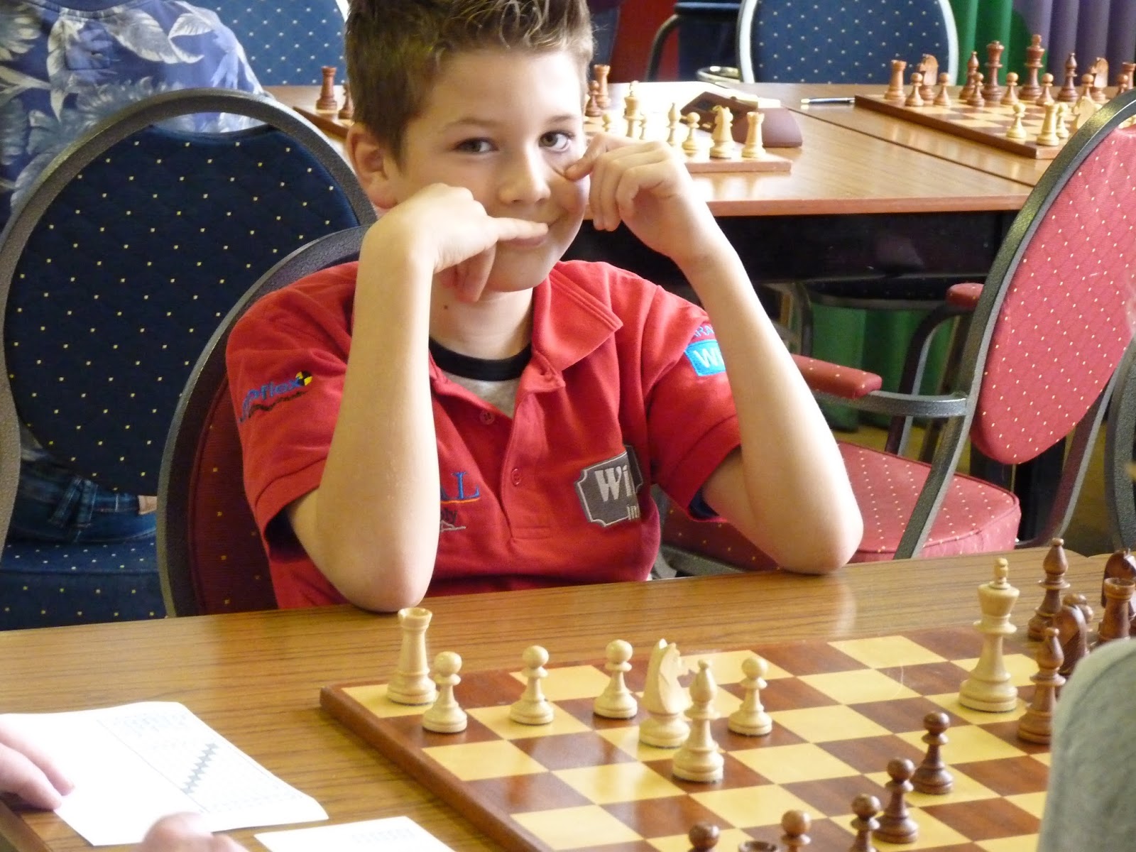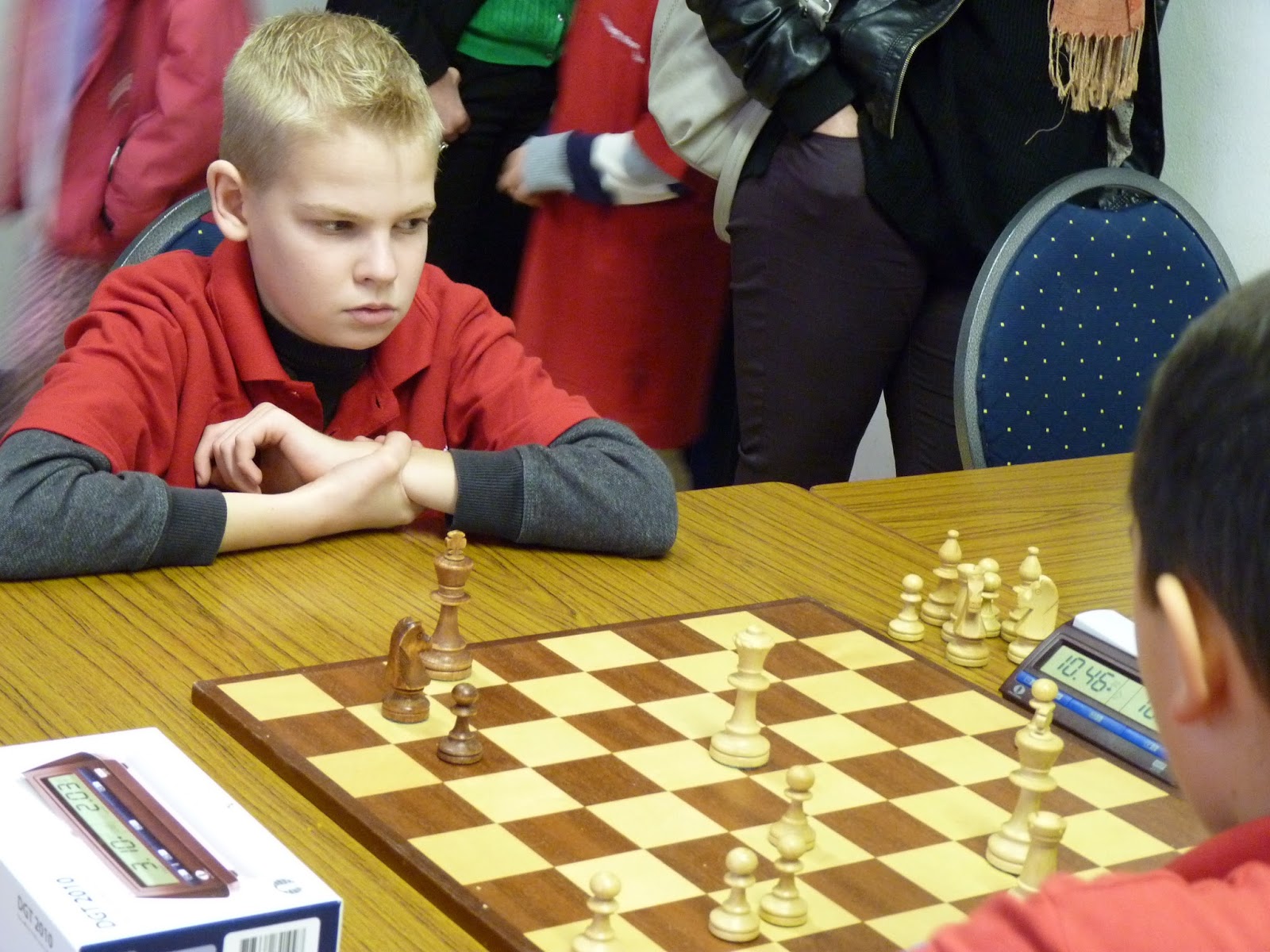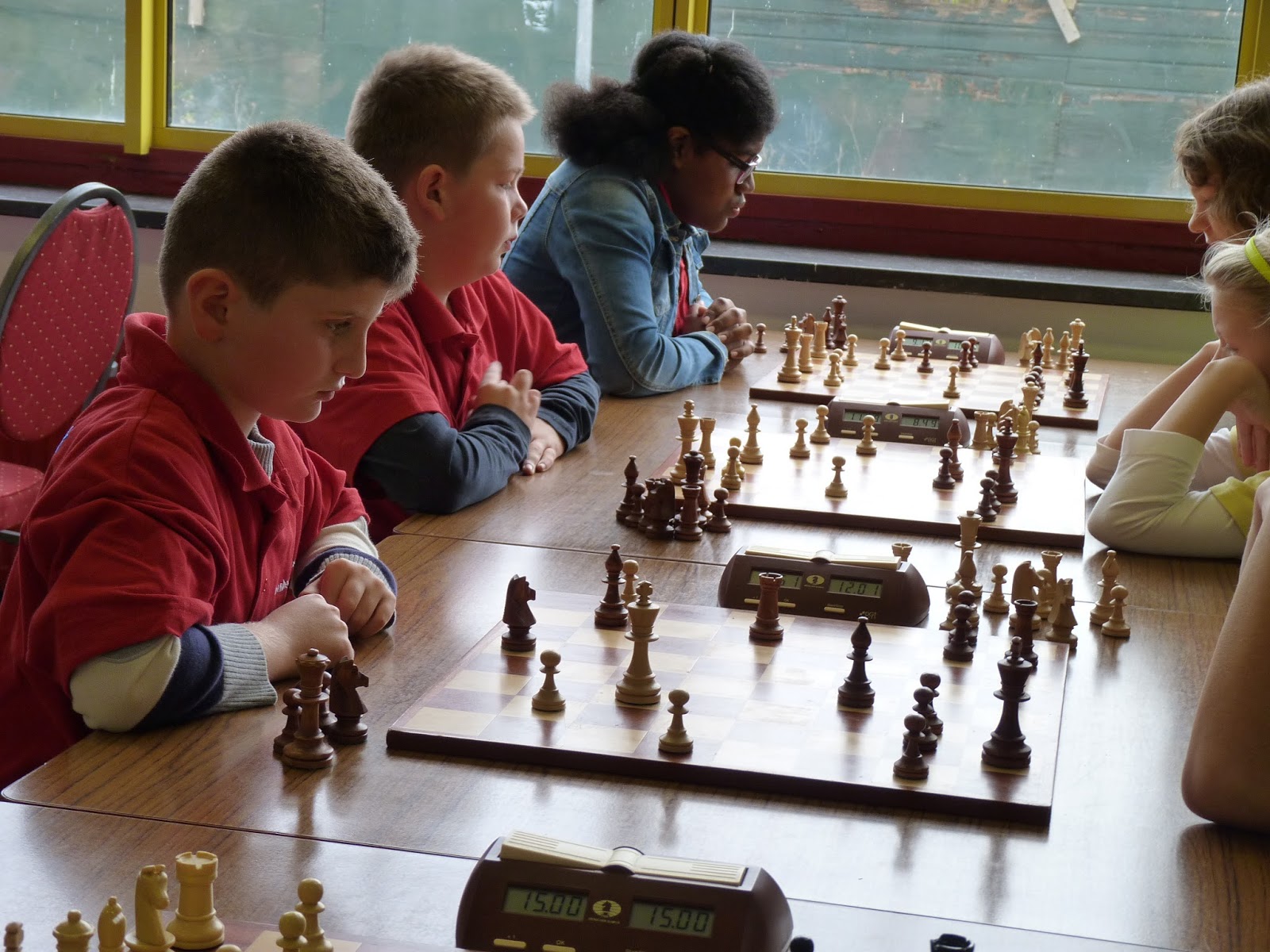 Van tevoren dacht ik dat Jovan het zwaar zou krijgen. Hij begon ook met twee nullen, maar toen lukte het opeens. Hij schakelde vreselijk snel en wist zich op te trekken aan de andere schakers uit de poule. Hij werd de verrassing van de dag en wist gedeeld eerste te worden samen met Rowin. Ga zo door, Jovan, want je hebt enorm veel talent. Rowin deed het in het begin ook geweldig. Twee ronden kon hij de concentratie minder goed opbrengen en verloor hij. Gelukkig werd hij op SB-punten eerste in de poule en Jovan derde. Anna-Mae had ook een plusscore wat betreft rating, maar dat was niet genoeg voor een prijs.