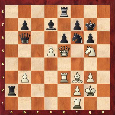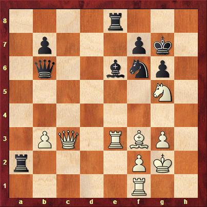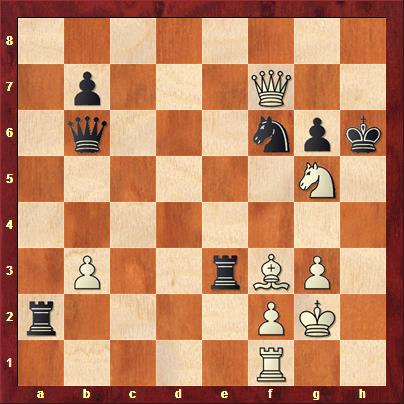 Na 31. Th1+ volgt 31… Kxg5 en het geopperde 31. Ph7 Txf3 32. Th1+ Ph5 33. Dxf3 Kxh7 34. Df7+ is eeuwig schaak. Wat we allemaal misten is dat wit kan winnen met 31. Pe4. Opeens dreigt Pxf6 en na 31… Pxe4 volgt wel 32. Th1+ Kg5 33. Df4#. Ook andere varianten verliezen, bijvoorbeeld 31… Txf3 32. Df8+! Kh5 33. Th1+ Kg4 34. Dc8+ Tf5 35. Th4#