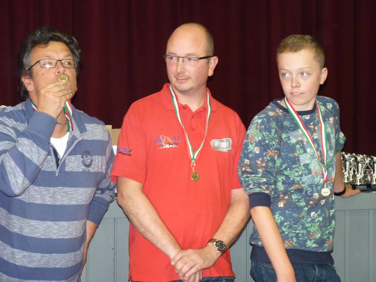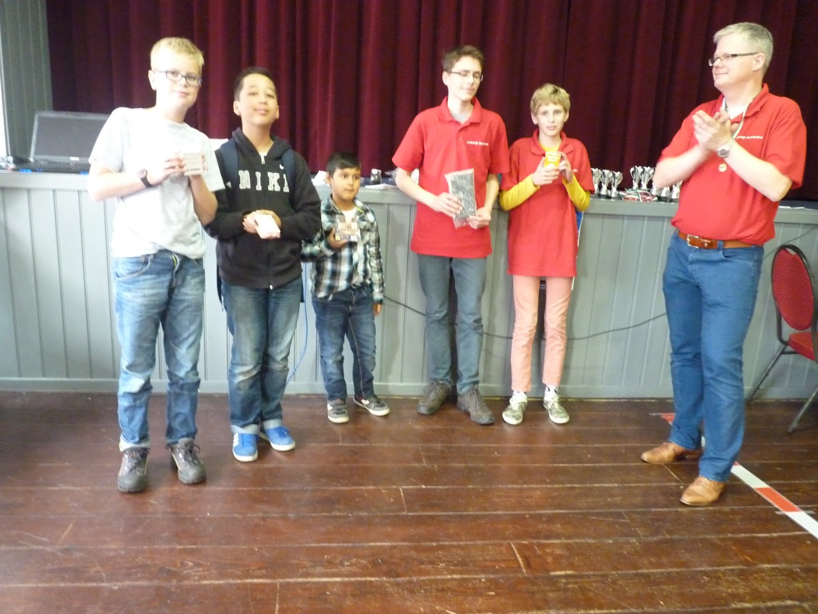 Ondertussen lopen alle groepsleiders binnen. Mark Petrelli, Stephan van der Hagen en Arend Bensink van collega clubs. Van onze voormalige seniorenafdeling waren Piet Beetsma, Jan Pilon en Harm Buter aanwezig. Ook oudlid Jille Niehof was trouwens present met zijn kleinzoon. De jongste jeugd is in vertrouwde handen van ons jeugdlid en oud jeugdkampioen Koen.