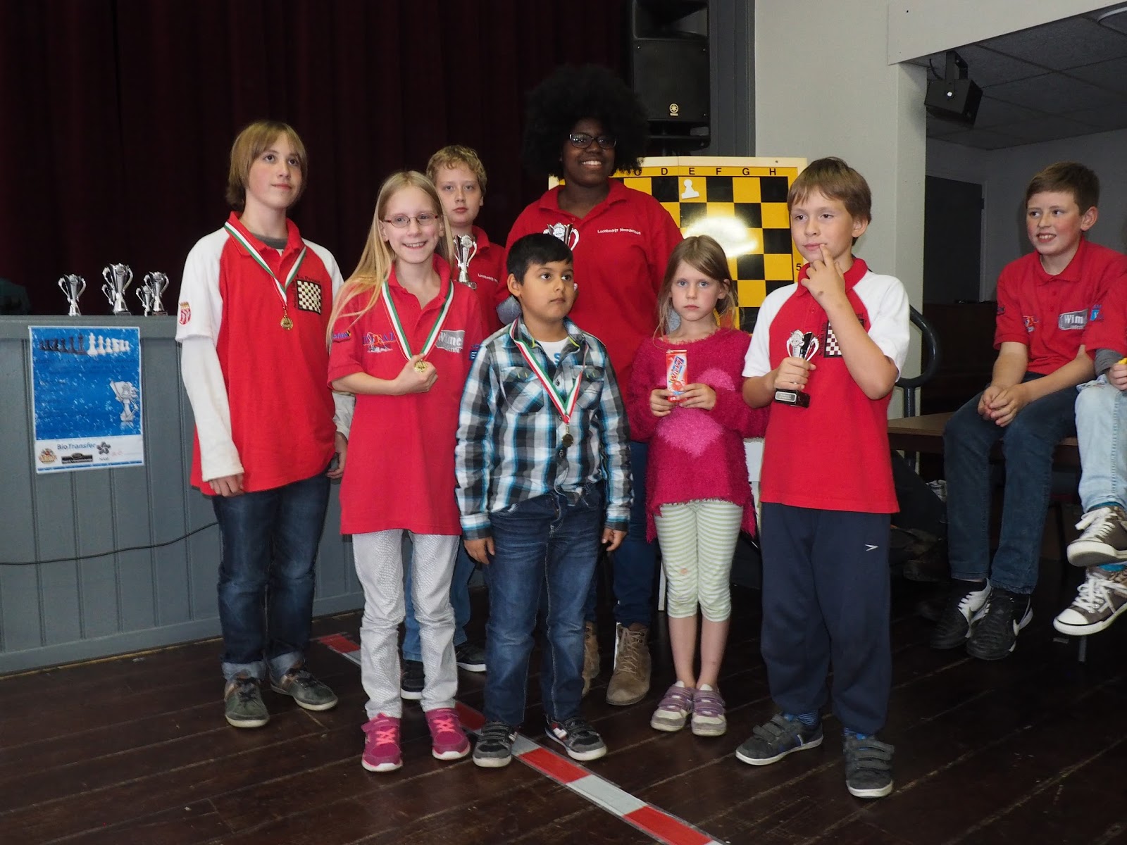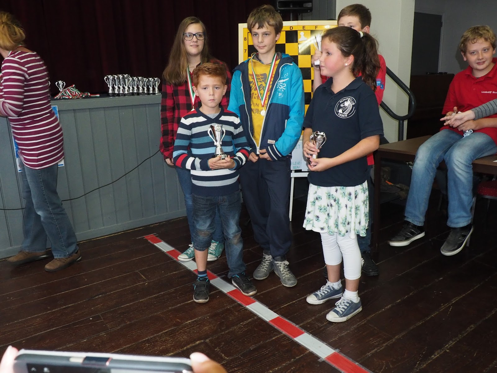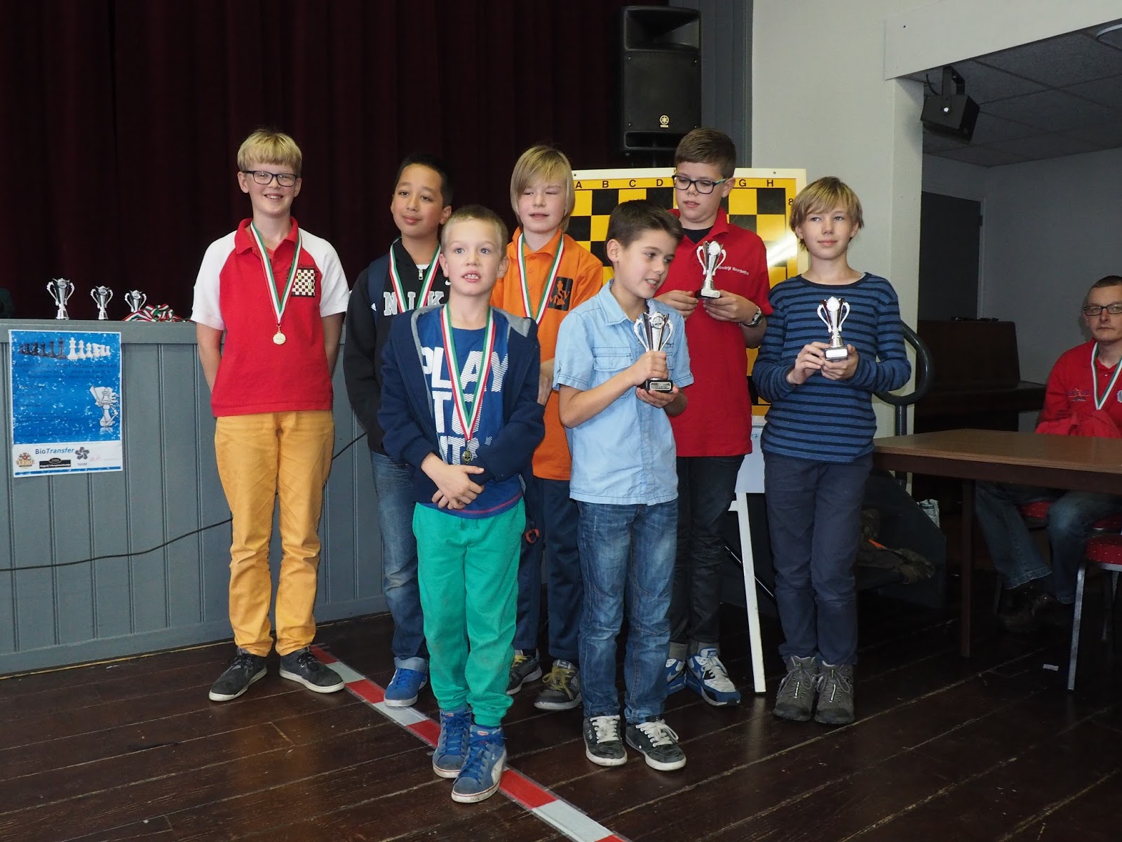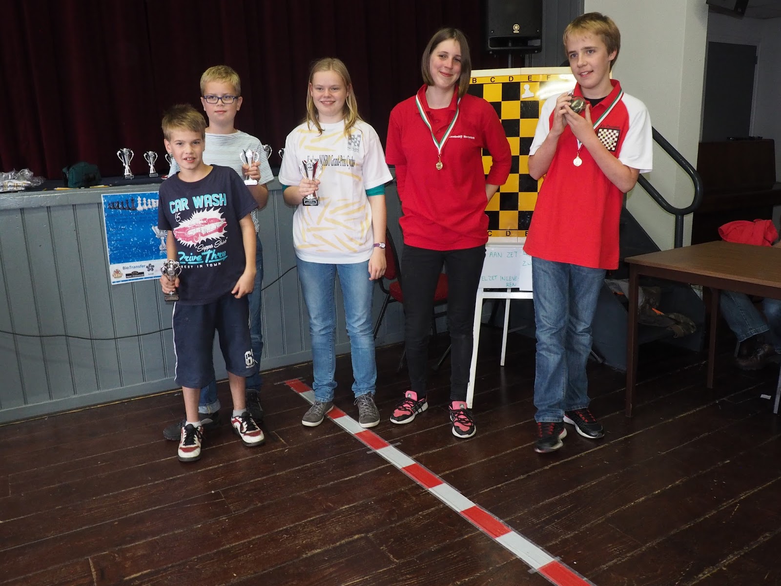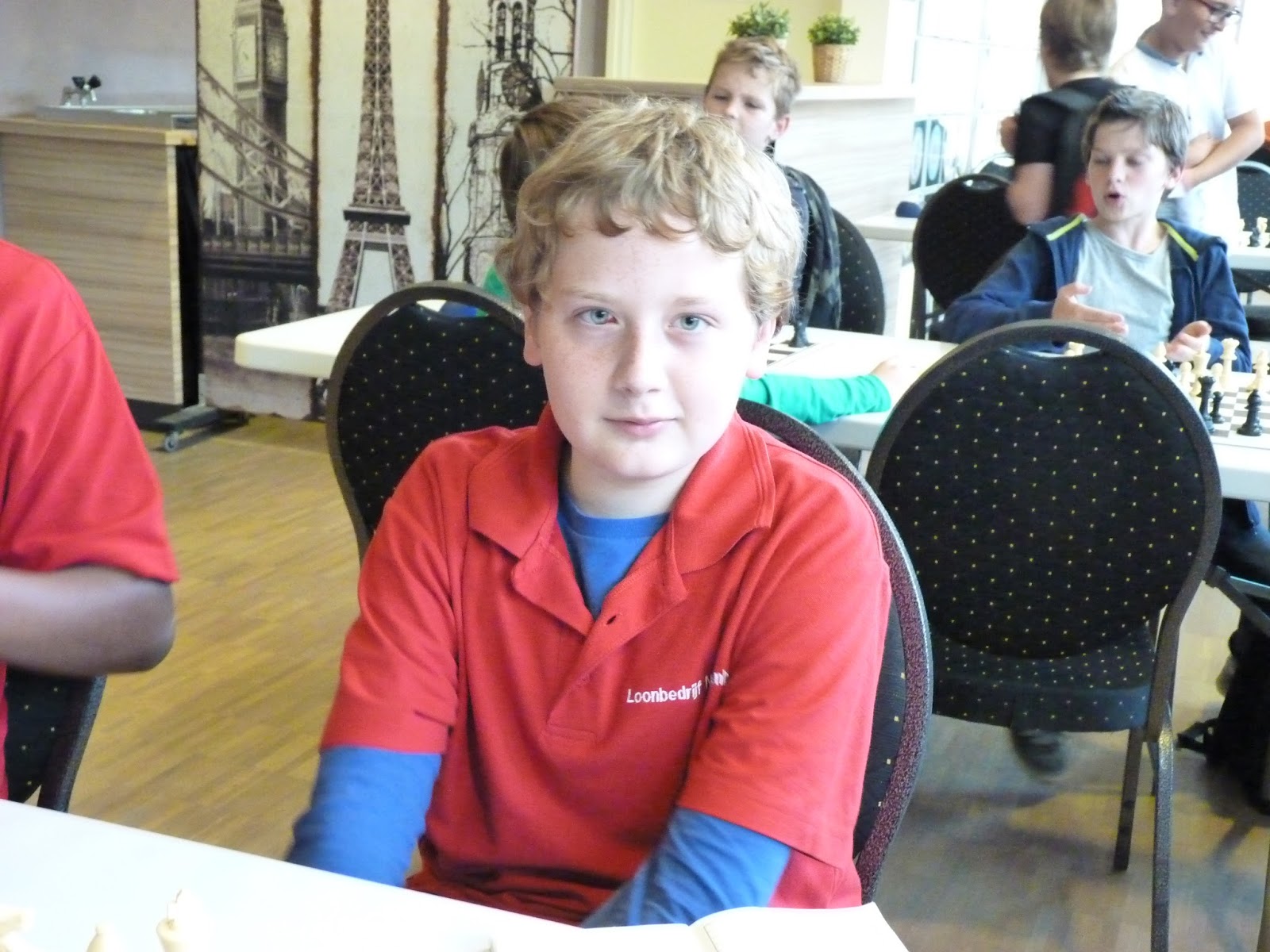 Gerbrich was vanmiddag geïnspireerd. Ze won meteen al van grote concurrent Willem en toen in de ronde daarna ook Tim er nog aan moest geloven in een heel lange partij, wist de rest van de groep waar ze aan toe waren. Gerbrich had zich voorgenomen om een keer in de leiderstrui te komen en kende geen genade. Ze won alles. De strijd om de tweede plek werd gewonnen door Tristan. Hij versloeg in de derde ronde Willem en eiste hiermee de tweede plaats op. Lemée speelde ook een goed toernooi, maar viel net buiten de prijzen.