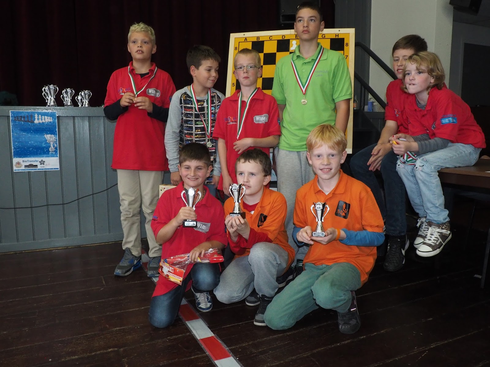 Deze groep speelde in de rustige rode zaal. Ook deze groep werd gesponsord door Lunchroom de Wichter. Eigenaresse Mariska kwam tijdens de schaakmiddag langs om het schaken te bekijken. Ze keek haar ogen uit. Dat zoveel jeugd aan het schaken was! En dat ze zo lang zich zo rustig op het spel konden concentreren!