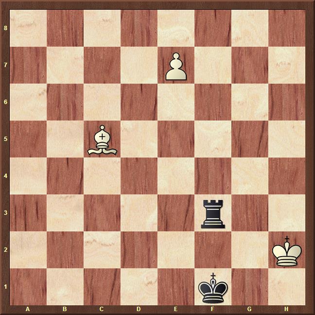 De enige zet die over blijft is daarom 1. Lg1. Nu kan wit op de volgende zet wel promoveren, omdat na 2… Th3+ 3. Kxh3 zwart de loper op g1 moet slaan.