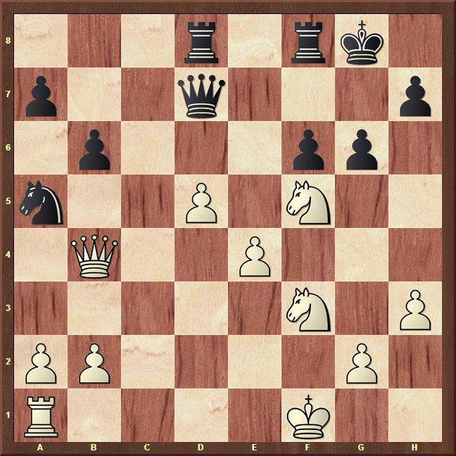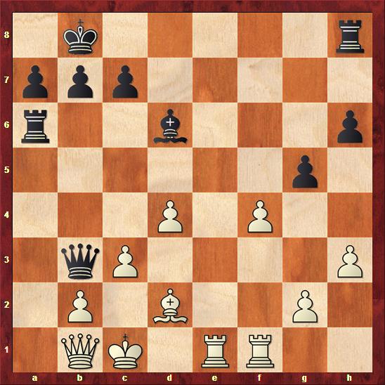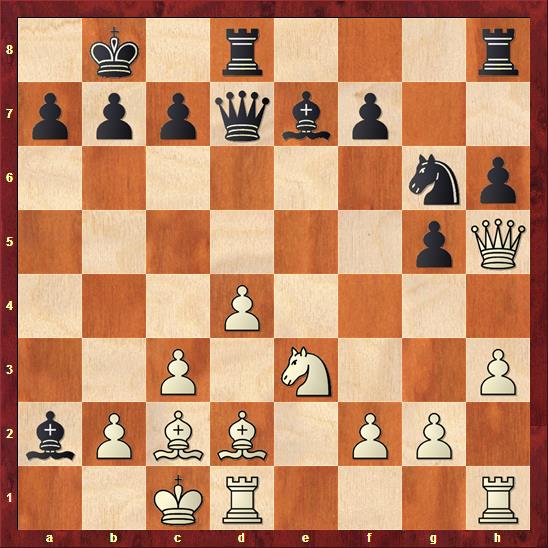 Wit heeft met de haar 19de zet een pion gewonnen. Maar dat was niet de mooiste pion om te winnen. De diagonaal h7-b1 na de witte koning is vrij gekomen en daar kan zwart nu gebruik van maken met 20… Lg8 Bijvoorbeeld 21. Df5 (dameruil) Dc6 is levensgevaarlijk, zie de variant 22. The1 Lh7! 23. Df7 Da4 en zwart heeft een winnende aanval