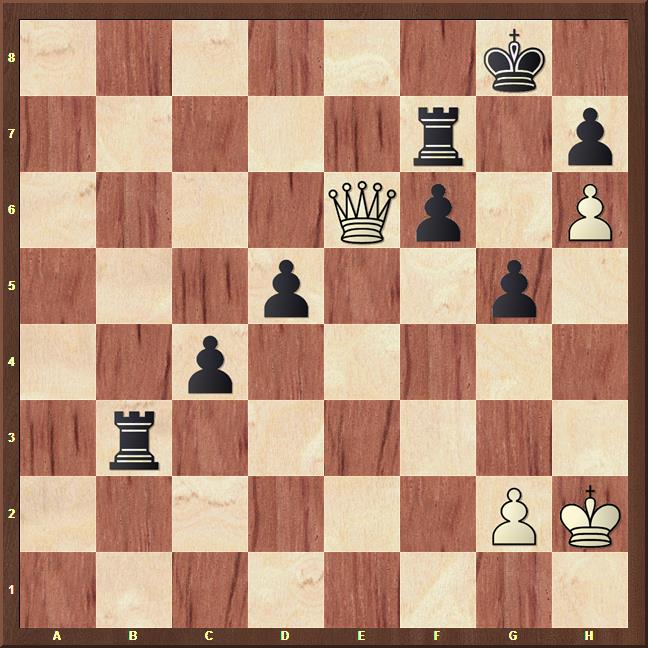 Ondertussen had Rowin zijn voordeel steeds verder uitgebreid. Eerst een pion gewonnen, daarna een kwaliteit en toen ontstond de volgende stand: